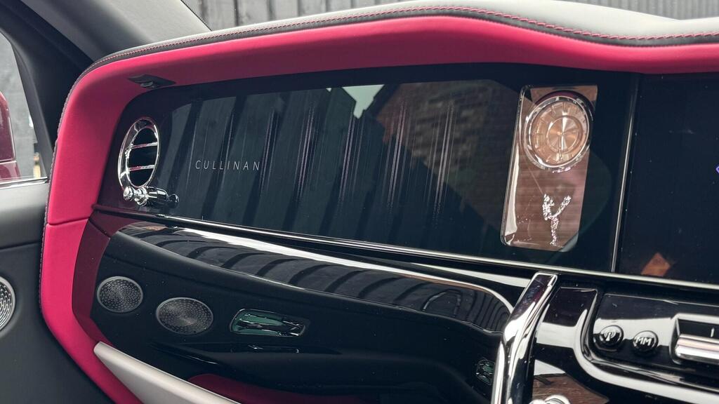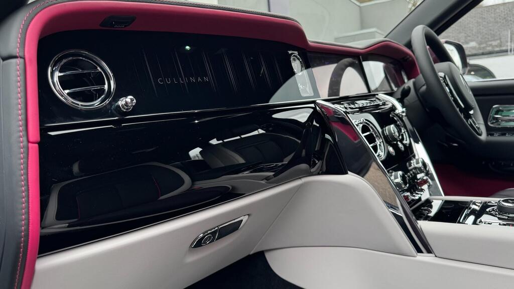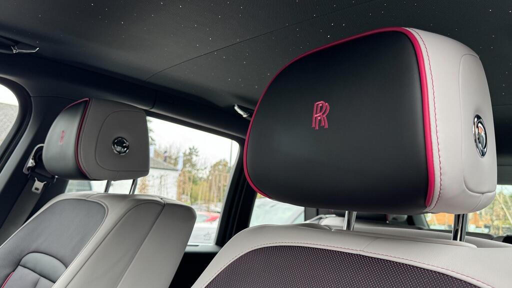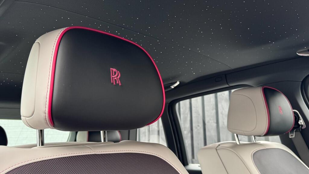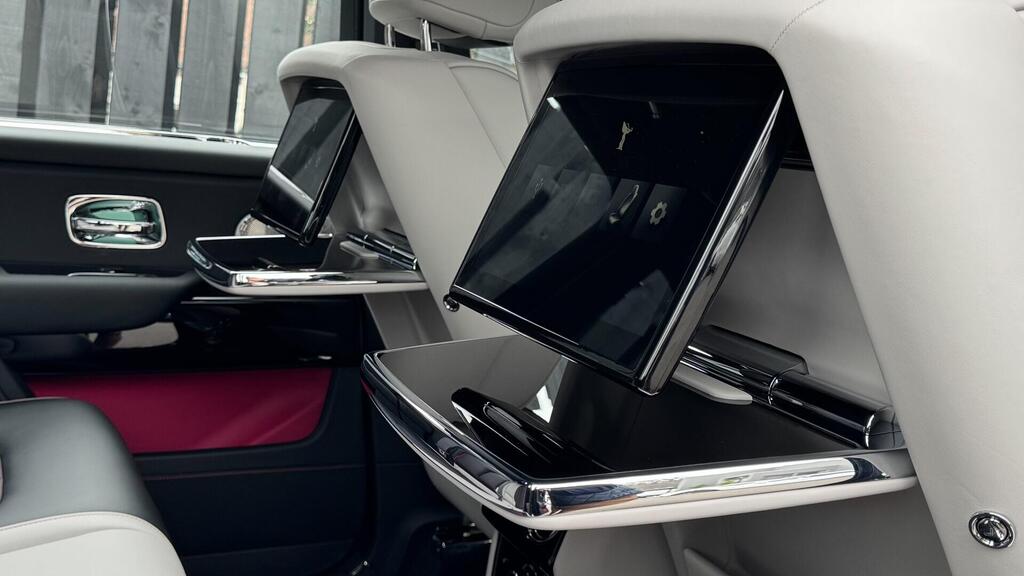 Rolls-Royce Cullinan Series II 6.75 V12 23" Part Polished Alloy Wheels, Starlight/Shooting Star Headliner , Rolls-Royce Bespoke Audio , Rear Theatre Configuration , Picnic Tables , Illuminated Fascia , SOE Embossing to all Doors , Front Massage Seats , Illuminated Grille , Illuminated "Cullinan" Treadplates ,Visible VIN Plaque , RR Monograms to all Headrests in Peony , Front Ventilated Seats , Tyre Pressure Monitor , Universal Garage Door Opener , Comfort Entry System , Heated Passenger Surround , Ambient Air Package , Active Cruise Control with Stop/Go Function , Apple Car Play , Wireless Telephone Charging , Personal eSIM , Spirit Digital Interface , Signature Key in Peony , Coloured Instrument Dials in Silver , Coloured Perforations in Peony , Coloured Seat Piping in Peony , Coloured Stitching in Peony , Lambswool Footmats , Thicker Coloured Steering Wheel .