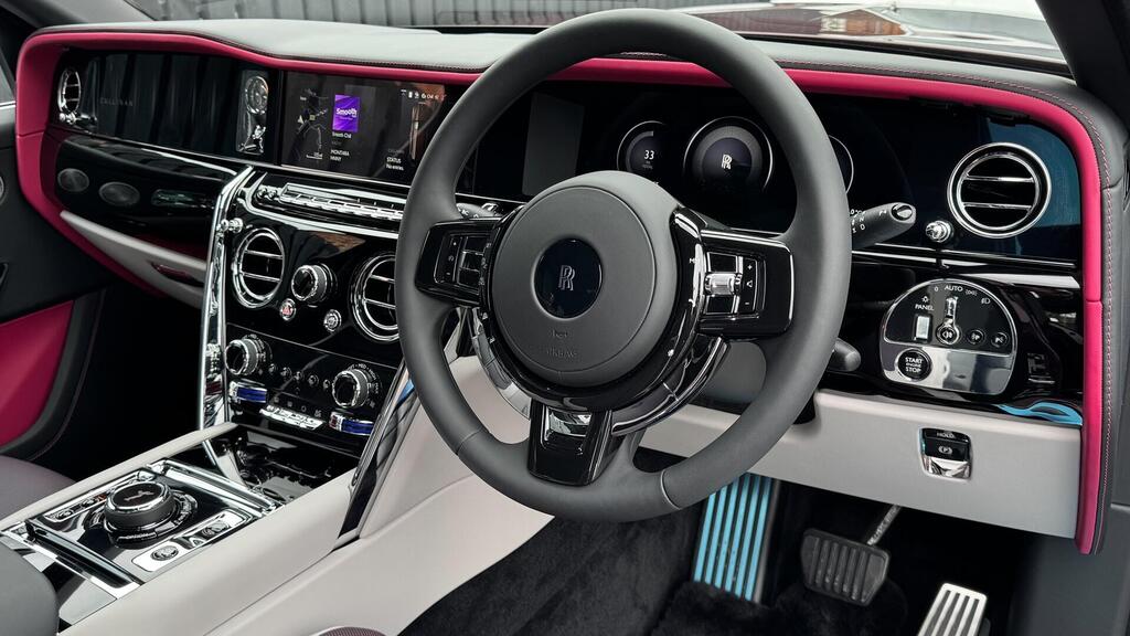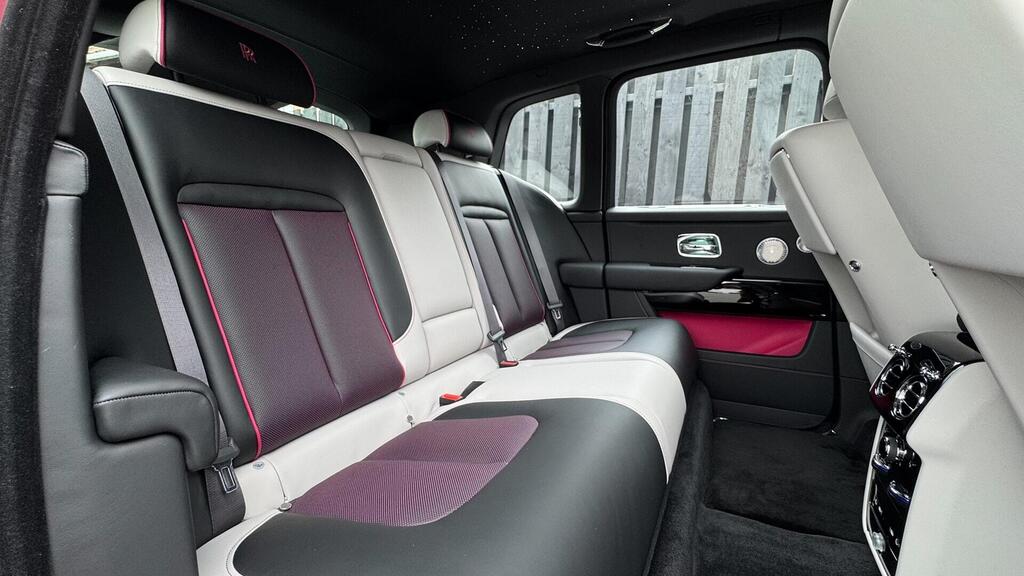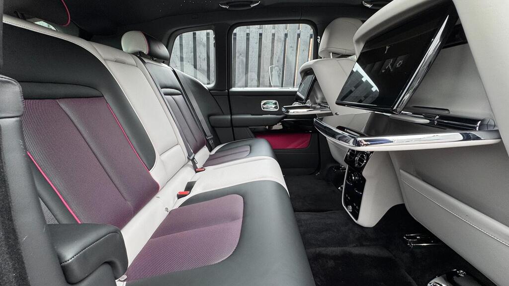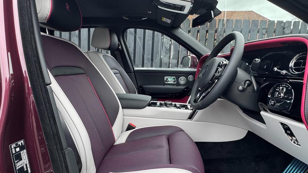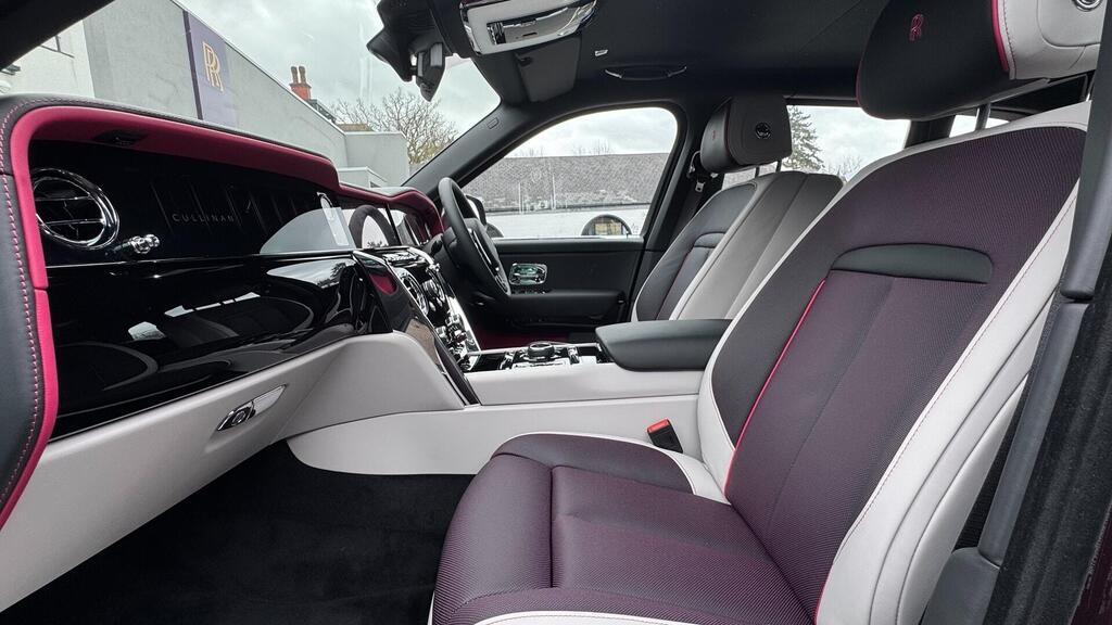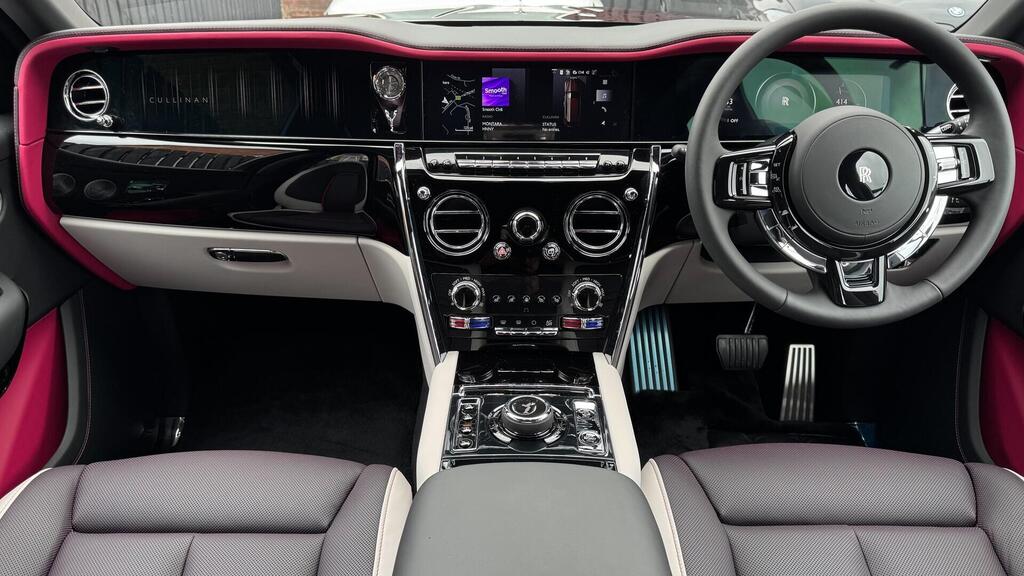 Rolls-Royce Cullinan Series II 6.75 V12 23" Part Polished Alloy Wheels, Starlight/Shooting Star Headliner , Rolls-Royce Bespoke Audio , Rear Theatre Configuration , Picnic Tables , Illuminated Fascia , SOE Embossing to all Doors , Front Massage Seats , Illuminated Grille , Illuminated "Cullinan" Treadplates ,Visible VIN Plaque , RR Monograms to all Headrests in Peony , Front Ventilated Seats , Tyre Pressure Monitor , Universal Garage Door Opener , Comfort Entry System , Heated Passenger Surround , Ambient Air Package , Active Cruise Control with Stop/Go Function , Apple Car Play , Wireless Telephone Charging , Personal eSIM , Spirit Digital Interface , Signature Key in Peony , Coloured Instrument Dials in Silver , Coloured Perforations in Peony , Coloured Seat Piping in Peony , Coloured Stitching in Peony , Lambswool Footmats , Thicker Coloured Steering Wheel .