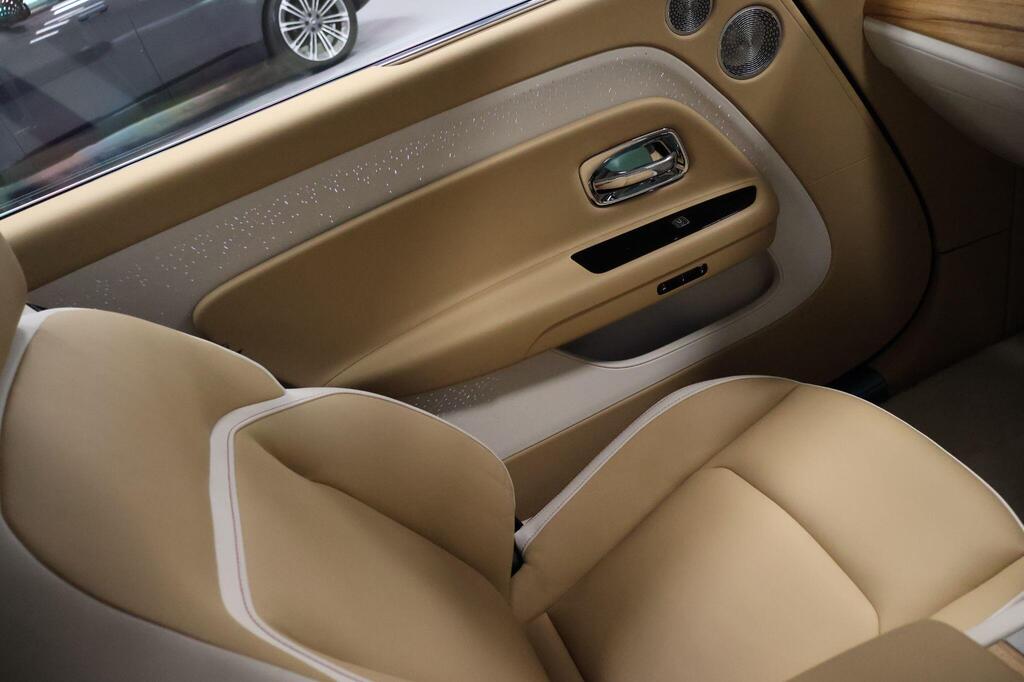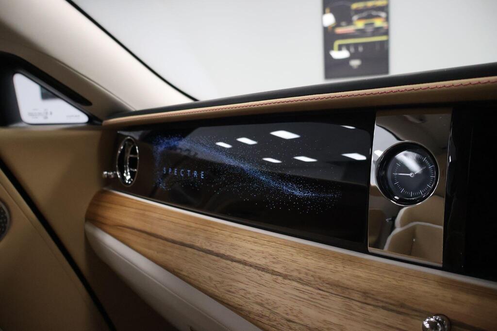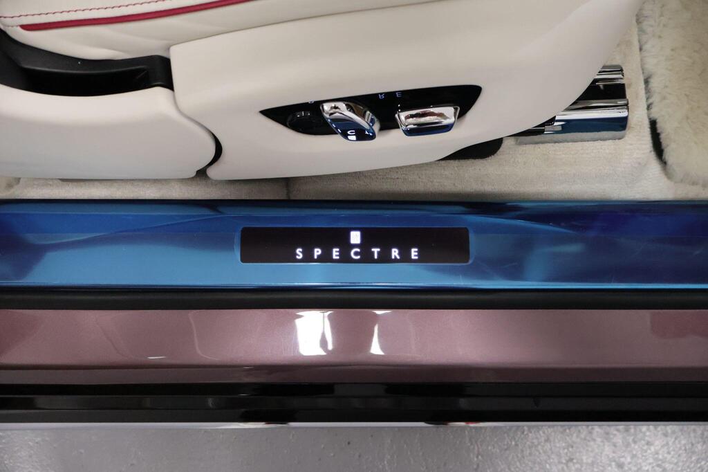 Rolls-Royce Spectre 120kWh 23" 7 Spoke Part Polished Wheels , Peony Pink Piping , Bespoke Interior Module Editing , Shooting Star Headliner, Starlight Doors, Open Paldao Wood, Vaneered Steering Wheel, Gold Coloured Instrument Dial, Illuminated Fascia, *lluminated Treadplate, Advanced Driver Assistance Systems , Rolls Royce Bespoke Audio, Rear Privacy Glass, Black Boot Trim, Polished Stainless Steel Package, Spectre Launch Package, Lambswool Foot Mats, Signature key Moccasin , Universal Garage Door Opener, Parking Assistant Plus, Illuminated Grille .