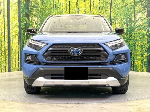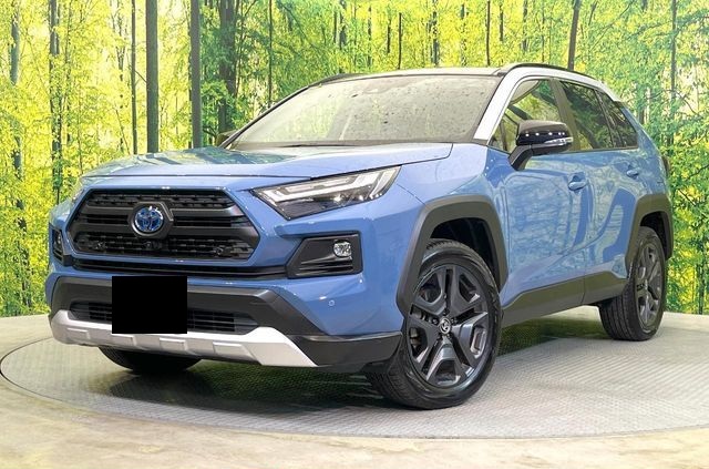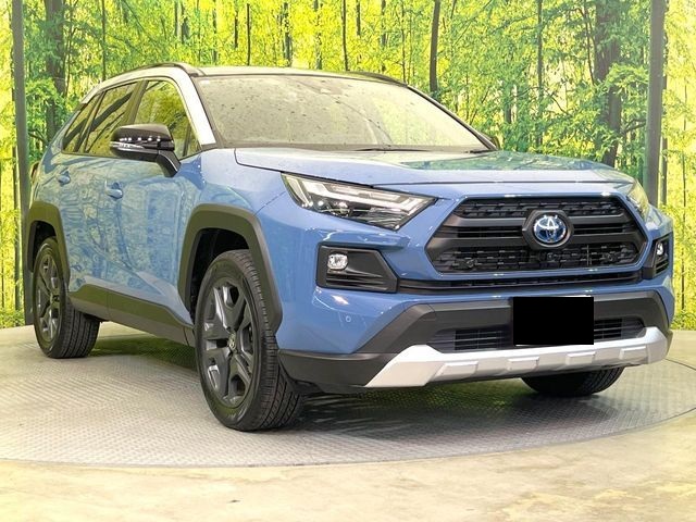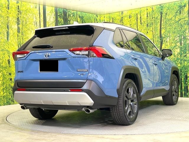 Toyota RAV4 Adventure Hybrid with panoramic sunroof, 2.5L engine, 19-inch alloy wheels, cruise control, blind-spot monitor, climate control, 360-degree camera, lane-keeping assist, heated and ventilated seats, power-adjustable driver's seat, automatic high beams, and Bluetooth multimedia