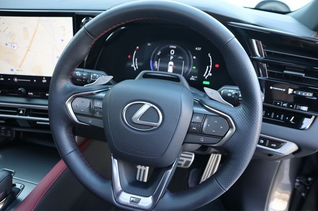 Lexus RX500h F Sport Performance Panoramic Sunroof, 2.4L, 21-inch alloy wheels, cruise control, climate control, heated and ventilated seats, heated steering wheel, 360-degree camera, power driver's seat with memory, parking assist, lane keep assist, blind spot monitor, wireless charging