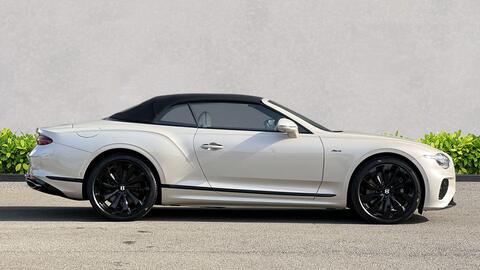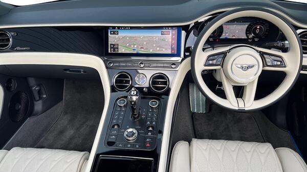 Bentley Continental 4.0 V8 High-Performance 25.9kWh GTC Azure 22in Alloy Wheels - Ten Spoke - Black Painted, Acoustic Heat, Insulating Front Screen, Acoustic Side Glass with IR Barrier, Automatic Folding Four Layer Insulated Fabric Roof - Black, Azure Exterior Fender Badges, 3D Surround View, Bentley Analogue Clock with Smooth Bezel, Blind Spot Warning, Front and Rear Park Distance Control, Intelligent Park Assist, Lane Assist, Advanced Air Filtration and Display with Particle Matter Sensor, Bang and Olufsen for Bentley, Electronic All Wheel Steering, Keyless Entry, Head-Up Display, Front Seat Heaters, Adaptive Cruise Control, Diamond Knurling to Rotary Switches and Column Stalks, Front Wellness Seating, Mood Lighting Specification, Steering Wheel - 3 Spoke Duo Tone Hide Trimmed - Heated