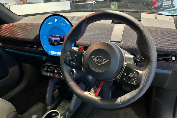 MINI Aceman 54.2kWh John Cooper Works Level 2 19in Alloy Wheels - Strive Spoke 2 Tone Including Sport Tyres - Jet Black, Range-410km, Cruise Control, Air Conditioning - Automatic, Sport Steering Wheel - Heated, Parking Assistant, Rear View Camera, Dashboard Knit - JCW - Black - Red, Heated Steering Wheel, harman/kardon Sound system
