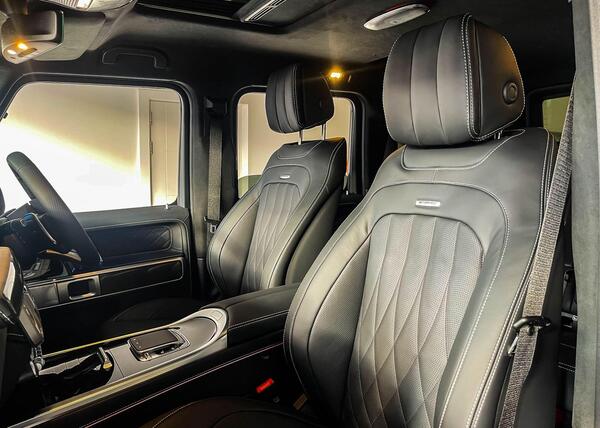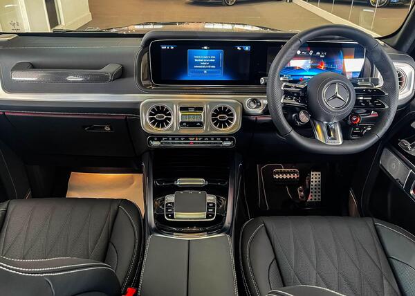 Mercedes-Benz G Class 4.0 G63 V8 BiTurbo MHEV AMG MANUFAKTUR Panoramic Sunroof 22in Alloy Wheels - AMG Forged Cross-Spoke Design - Painted Matt Black with High-Sheen Rim Flange, AMG Performance Exhaust System - Selectable and Two Chrome-trimmed Twin Tailpipes - Left and Right, Door Mirrors - Electrically Adjustable and Heated - Integrated Indicators - Front Area Lighting and Automatically Dimming Drivers Mirror, ATTENTION Assist, Active Parking Assist including PARKTRONIC, Cruise Control with Variable Speed Limiter, Parking Package with 360-Degree Camera, Parking-Assistance PARKTRONIC, Traffic Sign Assist, Burmester 3D Surround Sound System, Smartphone Integration Comprising Apple CarPlay and Android Auto, Wireless Charging - Front, AMG Performance Steering Wheel in Nappa Leather 3-Spoke Design with Flattened Bottom Section, KEYLESS-GO Starting Function, Interior Air Ionisation with Air Filter, Interior Air Ionisation with Air Filter, THERMOTRONIC Automatic Climate Control with Three Climate Zones and Three Climate Styles - Medium - Diffuse and Focused