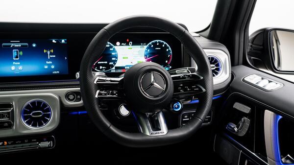 Mercedes-Benz G Class 4.0 G63 V8 BiTurbo MHEV AMG MANUFAKTUR Panoramic Sunroof 22in Alloy Wheels - AMG Forged Cross-Spoke Design - Painted Matt Black with High-Sheen Rim Flange, AMG Performance Exhaust System - Selectable and Two Chrome-trimmed Twin Tailpipes - Left and Right, Door Mirrors - Electrically Adjustable and Heated - Integrated Indicators - Front Area Lighting and Automatically Dimming Drivers Mirror, Burmester 3D Surround Sound System, Smartphone Integration Comprising Apple CarPlay and Android Auto, Wireless Charging - Front, ATTENTION Assist, Active Parking Assist including PARKTRONIC, Cruise Control with Variable Speed Limiter, Parking Package with 360-Degree Camera, Parking-Assistance PARKTRONIC, Traffic Sign Assist, AMG Performance Steering Wheel in Nappa Leather 3-Spoke Design with Flattened Bottom Section, Interior Air Ionisation with Air Filter, Steering Wheel - Heated, Seats - Heated Rear, THERMOTRONIC Automatic Climate Control with Three Climate Zones and Three Climate Styles - Medium - Diffuse and Focused, Ventilated Multicontour Front Seats