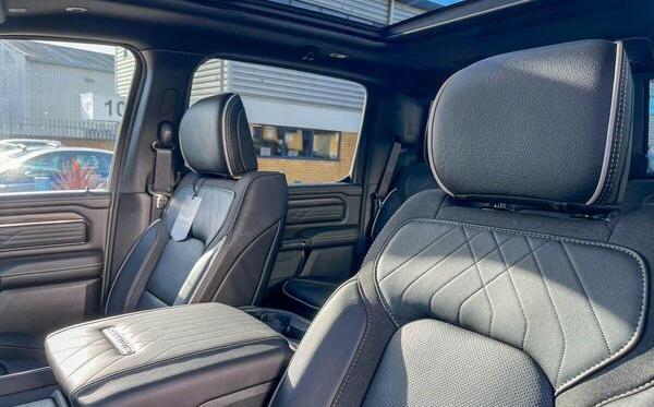 Dodge RAM 1500 Limited Night Edition Panoramic Sunroof 22" x 9" black aluminium wheels, Active lane management system, Adaptive cruise control with stop/go, Blind spot detection & cross path detection, Forward collision warning plus, Front & rear parking sensors, 19 speaker Harman Kardon system with 900w amplifier, Bluetooth connectivity including Apple CarPlay & Android Auto, Power front seats with recline, lumbar support, cushion tilt, height, forward & backwards control, Smart key with hands-free access & push button start, Surround view camera