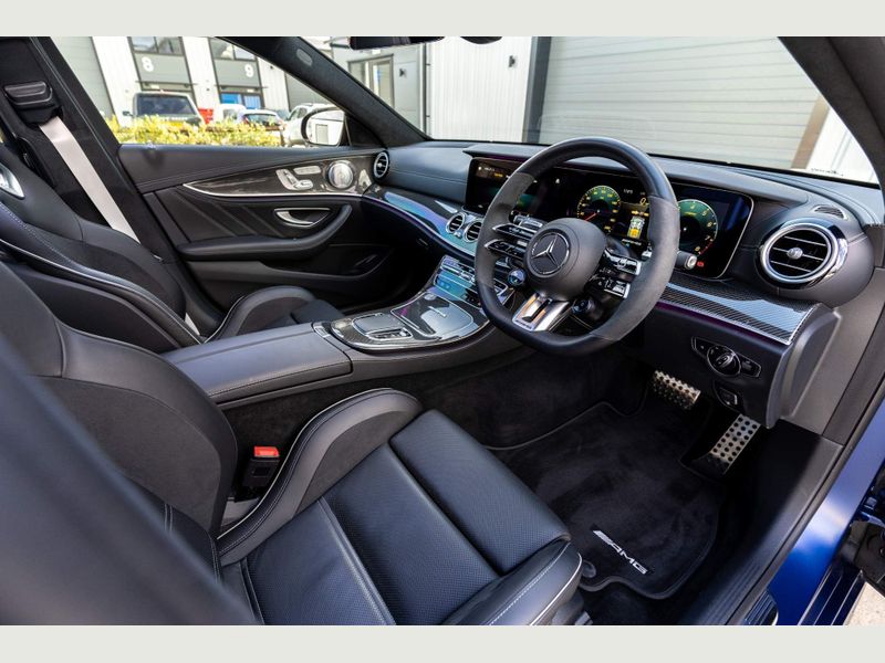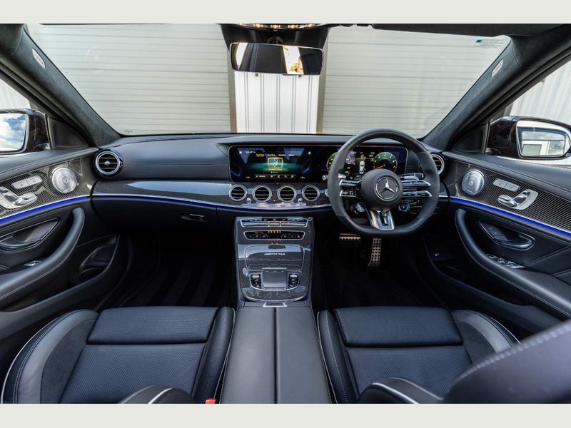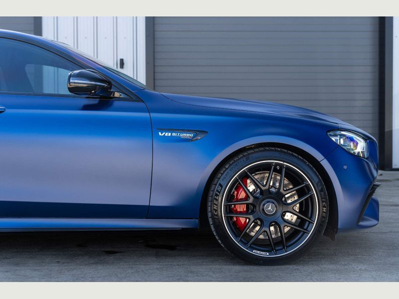 Mercedes-Benz E Class 63s AMG V8 Night Edition 4.0 Panoramic Sunroof on 20in Alloy Wheels - AMG Cross-Spoke Forged Design - Painted in Matt Black with a High-Sheen Finish. Blind Spot Assist. Burmester Surround Sound System. Cruise Control with Variable Speed Limiter. Parking Package with 360-Degree Camera. KEYLESS-GO Starting Function. Seats - Heated Front.