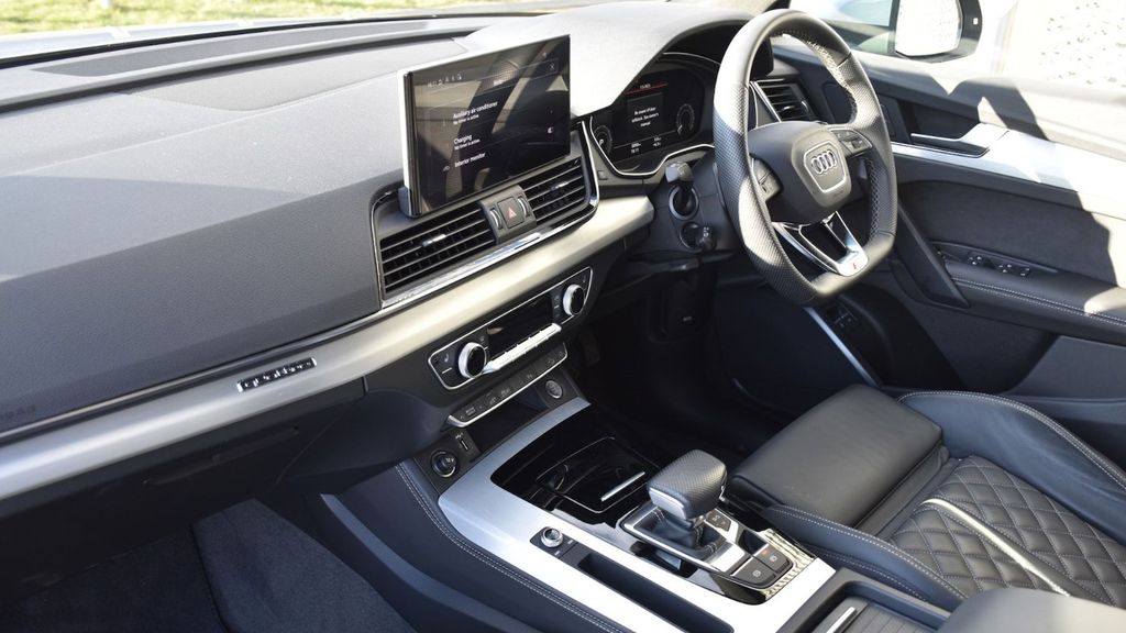 Audi Q5 Avant 55 TFSI e Quattro Competition 2.0 on 20in Alloy Wheels - 8.0J 5-Spoke - Segment Design Contrasting Grey - Diamond Cut. Audi Sound System. Cruise Control System with Speed Limiter. Front and Rear Parking Sensor with Acoustic Warning. Reversing Camera. Full Electrically Adjustable Front Seats. Heated Front Seats. Keyless engine start.