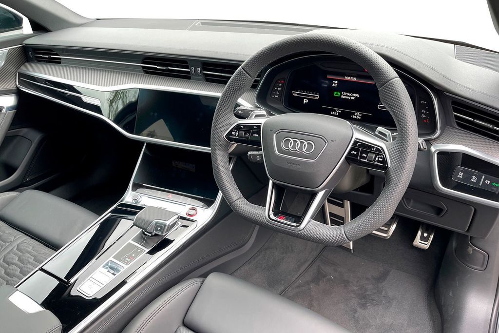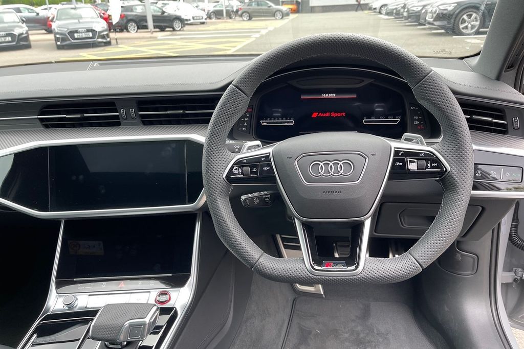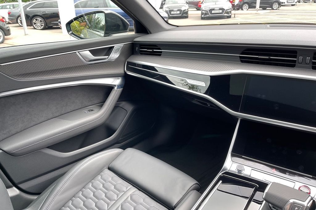 Audi RS6 Avant TFSI V8 Vorsprung 4.0 Panoramic Sunroof on 22in Alloy Wheels - Black Gloss Turned Finish. Audi Sound System. Cruise Control System with Speed Limiter. Rear-View Camera. Heated Front Seats. Keyless engine start.
