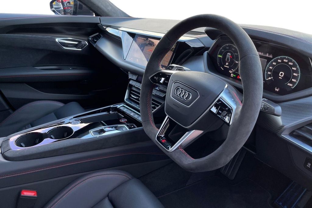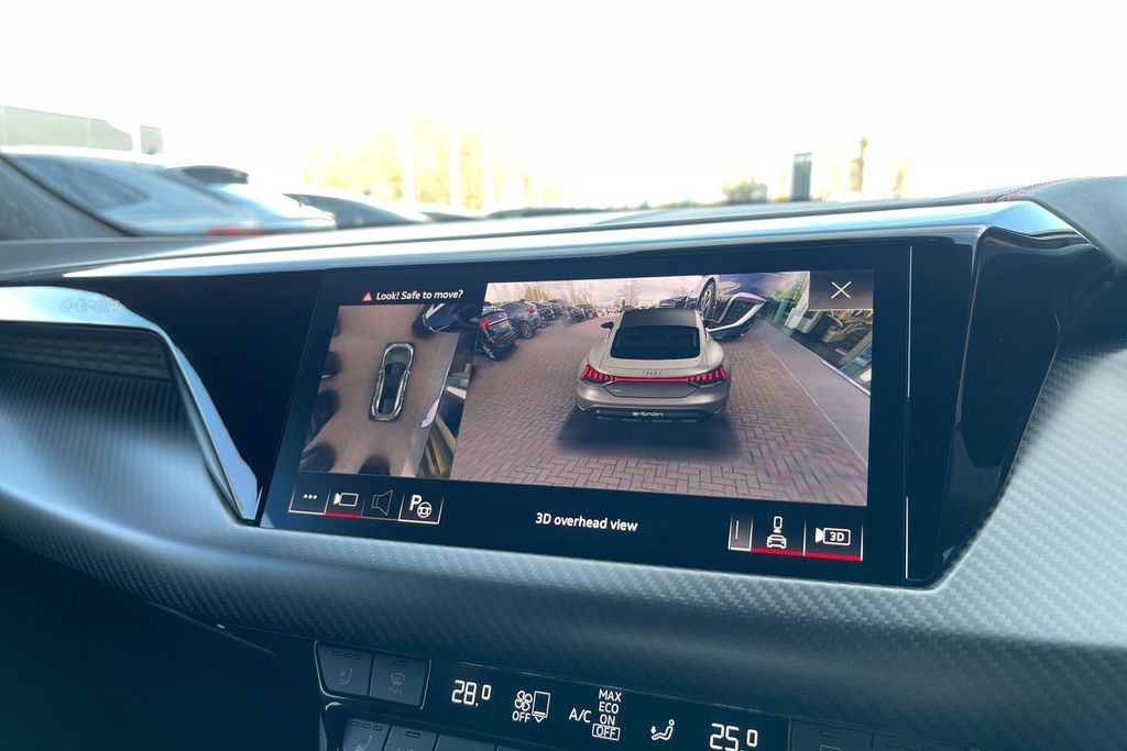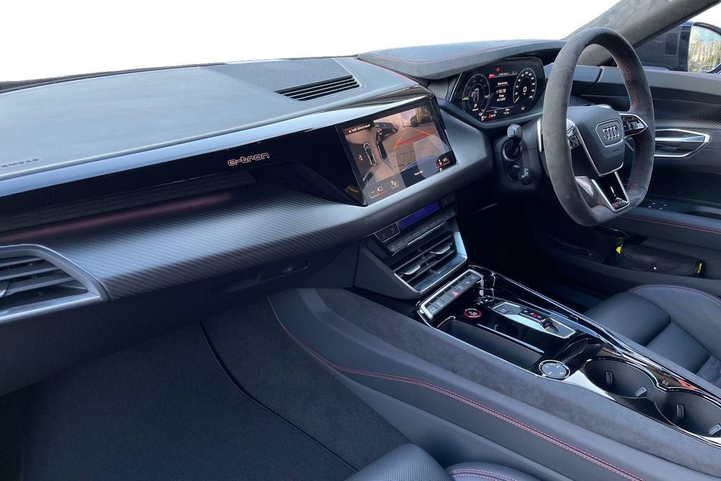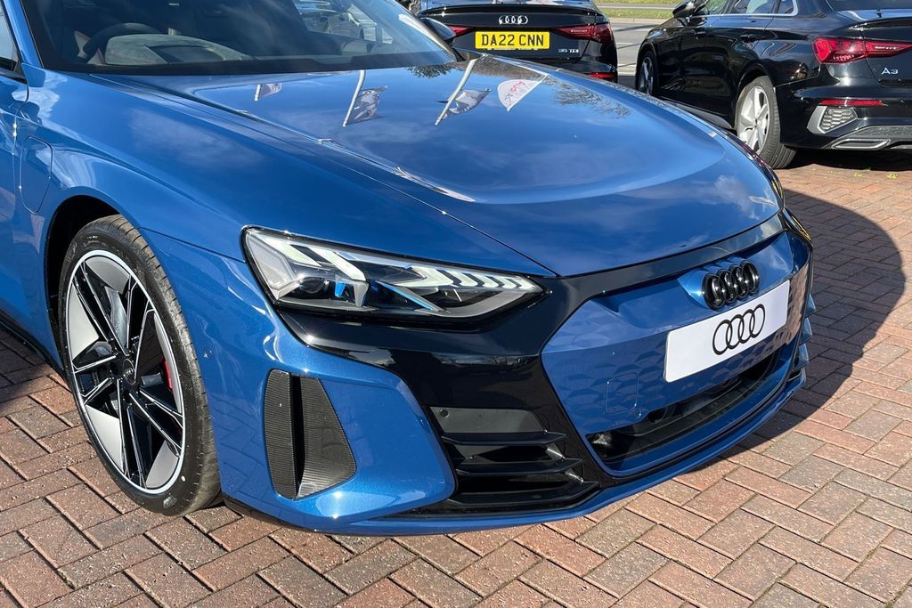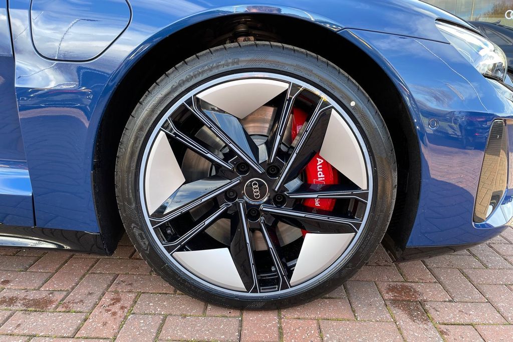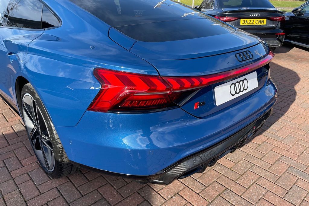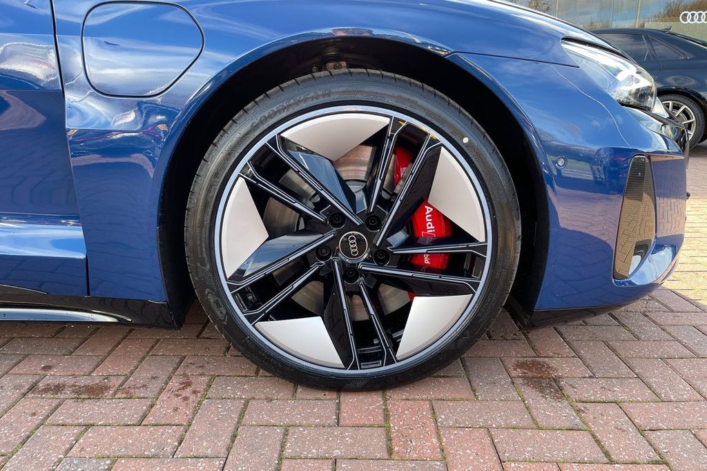 Audi RS e-Tron GT Carbon Vorsprung on 21in Alloy Wheels - 5-Twin-Spoke - Concave-Module Design - Cast Aluminium - Gloss Black with Graphic Printing and Bicolour Inserts in Black and Silver. Bang and Olufsen Sound System. Cruise Control with Speed Limiter. Rear-View Camera. Electrically Adjustable Front Seats with Memory Function for Drivers Side. Heated Front Seats. Keyless-Go with Motion Activated Boot Opening.