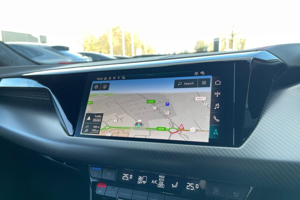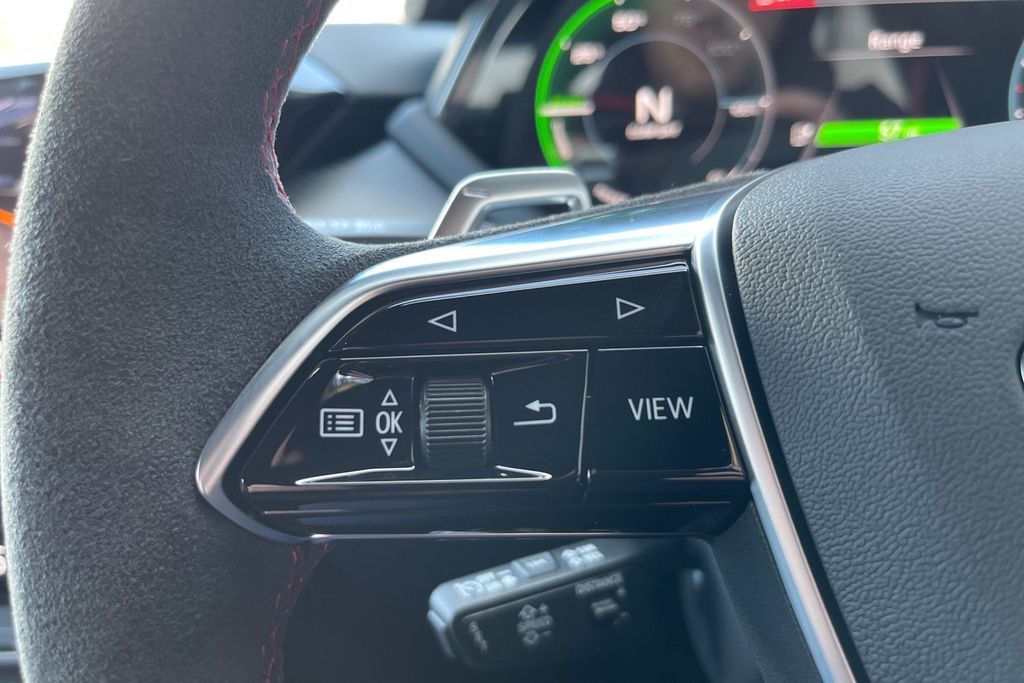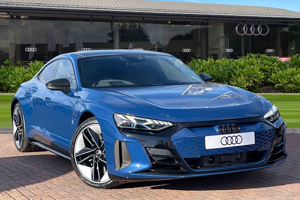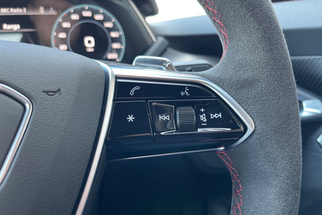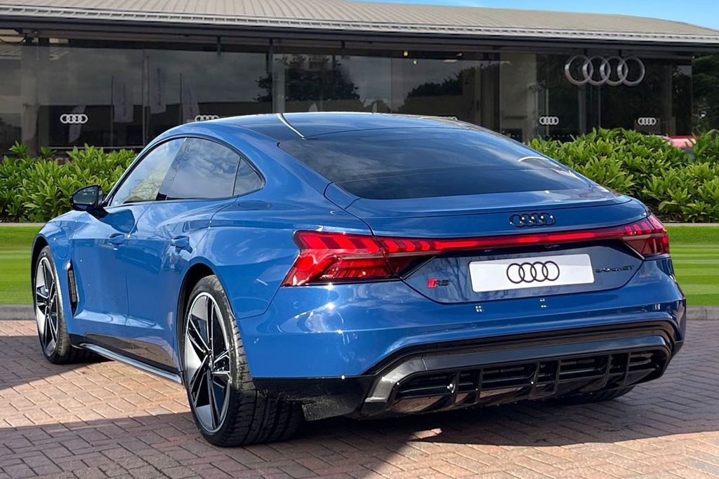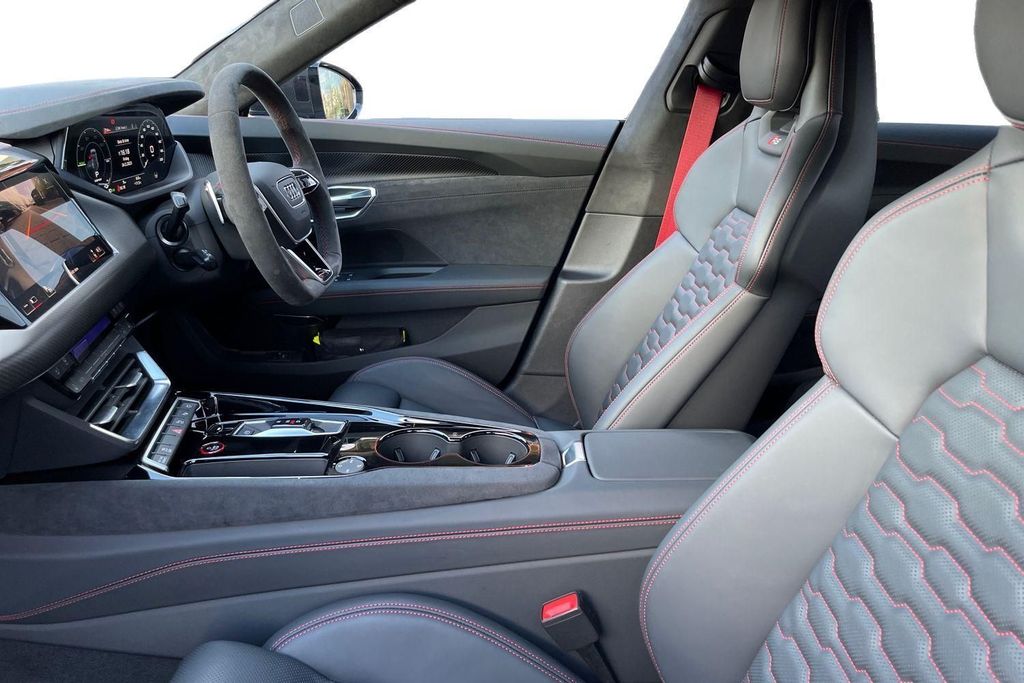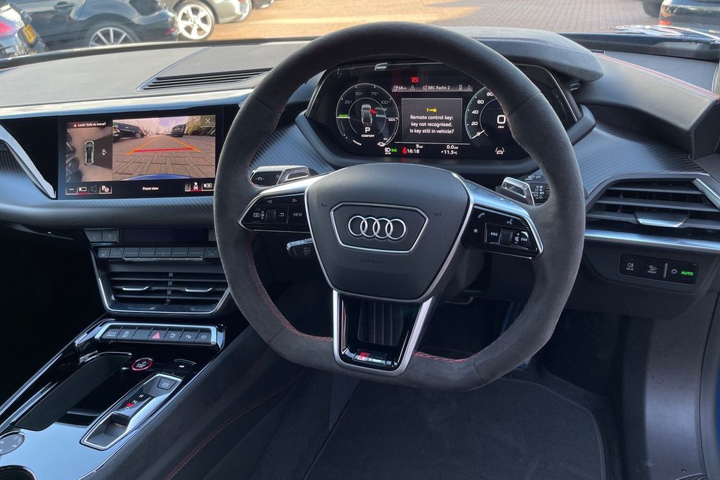 Audi RS e-Tron GT Carbon Vorsprung on 21in Alloy Wheels - 5-Twin-Spoke - Concave-Module Design - Cast Aluminium - Gloss Black with Graphic Printing and Bicolour Inserts in Black and Silver. Bang and Olufsen Sound System. Cruise Control with Speed Limiter. Rear-View Camera. Electrically Adjustable Front Seats with Memory Function for Drivers Side. Heated Front Seats. Keyless-Go with Motion Activated Boot Opening.