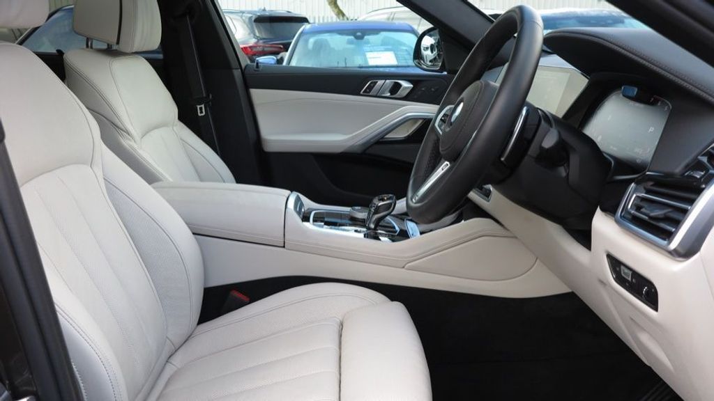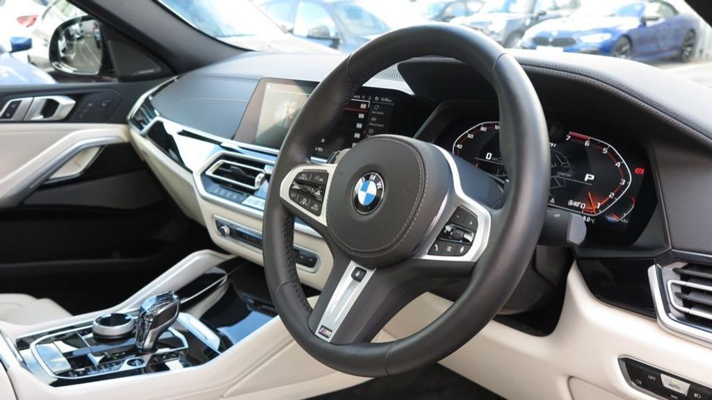 BMW X6 Series X6 M50i 4.4. Panoramic Sunroof. 22" 746 Individual V-spoke Alloy Wheels. Harman/Kardon Surround Sound Audio System. Apple CarPlay. Parking Sensors. Reversing Camera. Cruise Control. Multi-Function Controls for Leather Steering Wheel. Front Massage Seats. Front and Rear Heated Seats. Heated and Cooled Cupholder. Four-zone Automatic Air Conditioning.