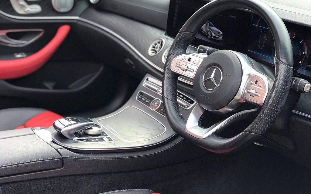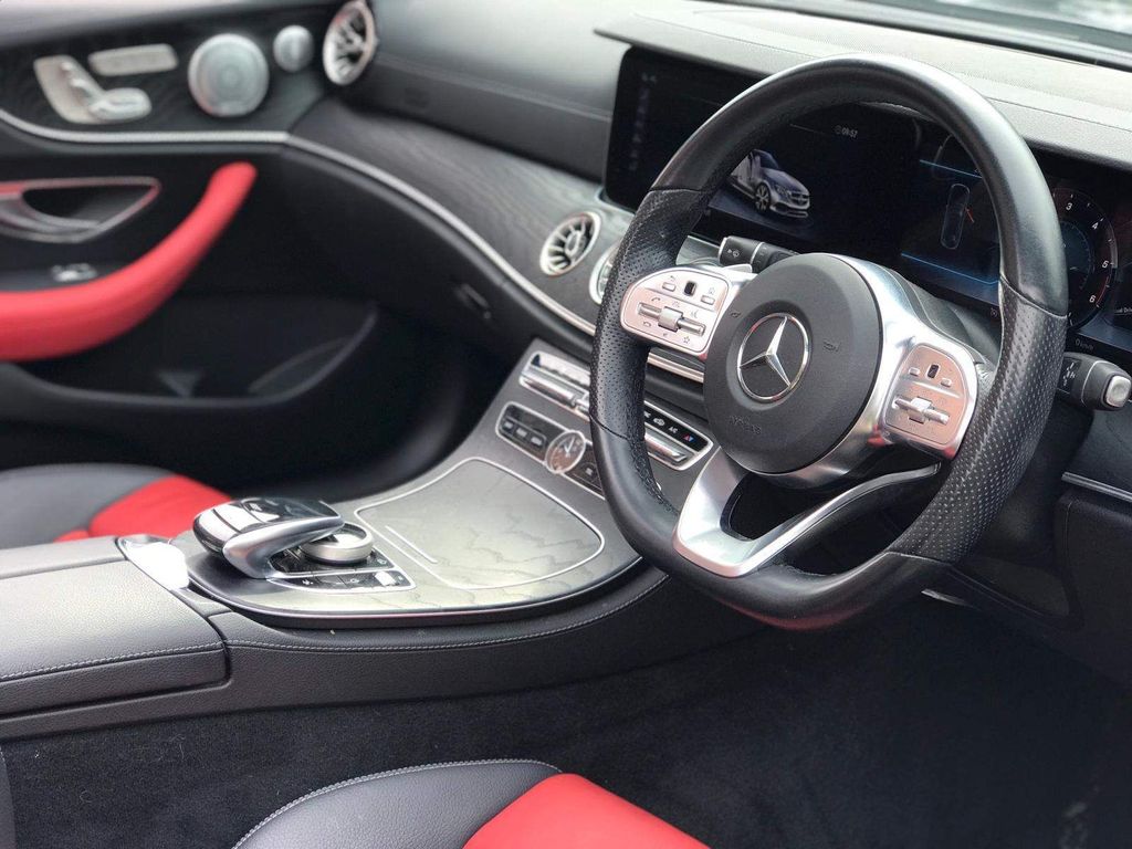Mercedes-Benz E Class E220d AMG Line Premium Plus G-Tronic+ 2.0. 20in Alloy Wheels - Multi-Spoke Design - Painted in Titanium Grey with High-Sheen Finish. Burmester sound system. Apple CarPlay. Android auto. Front & rear park distance control. 360 Camera. Cruise Control with Variable Speed Limiter. Keyless start. 3-Spoke AMG Multi-Function with Touch Control Buttons - Trimmed in Black Nappa Leather with Flattened Bottom Section. Steering Wheel - Gear Shift Paddles. Heated Front Seats.