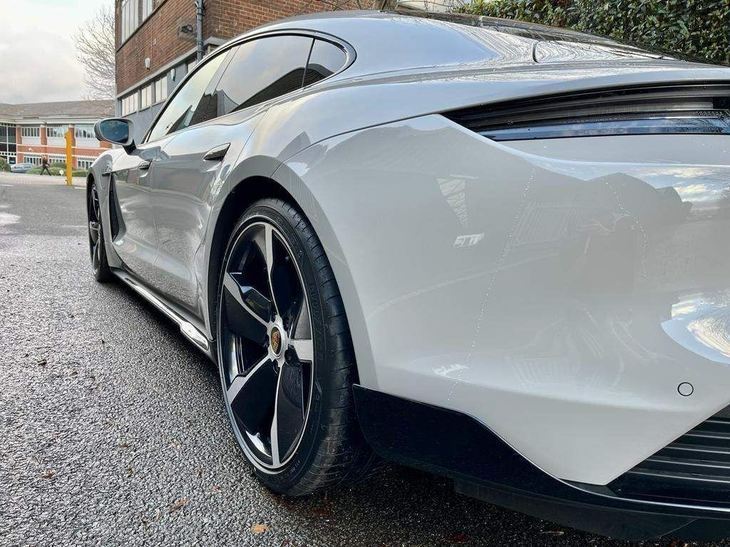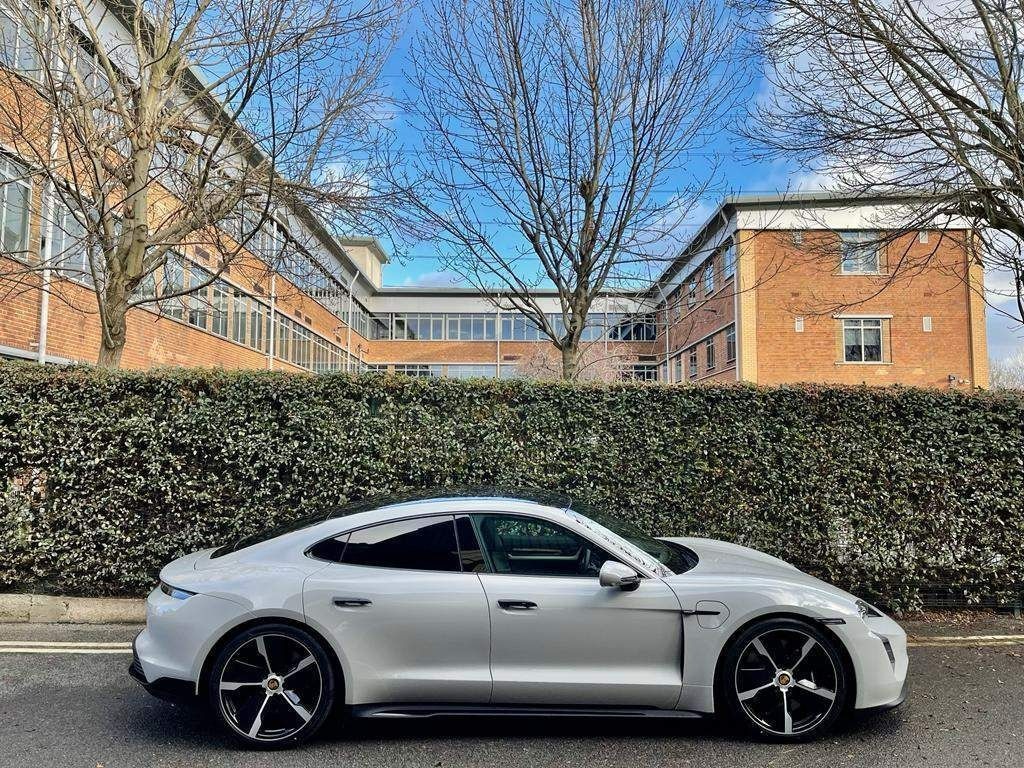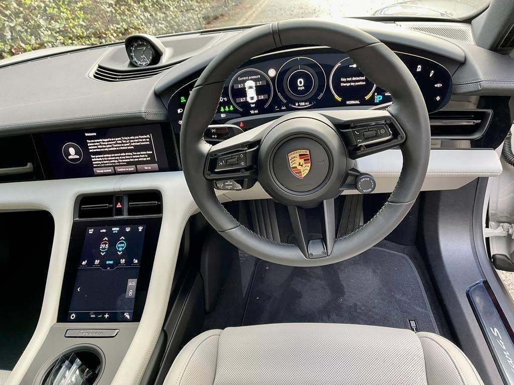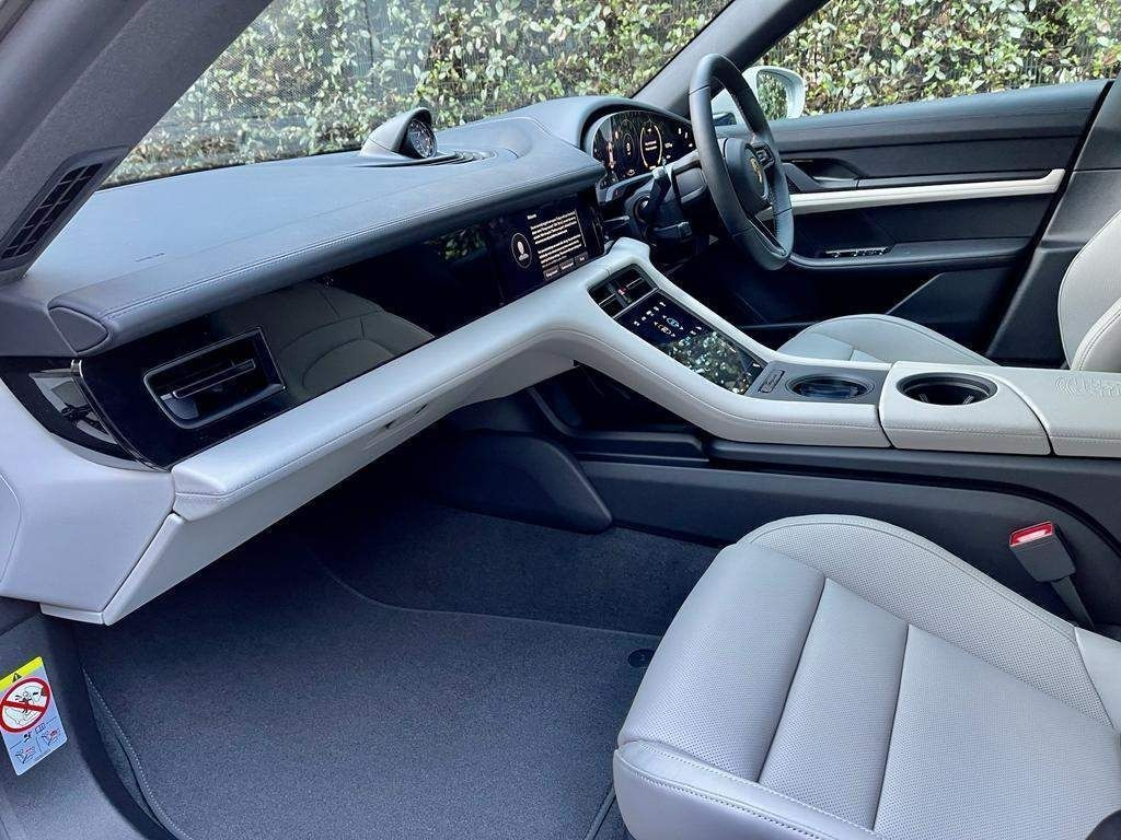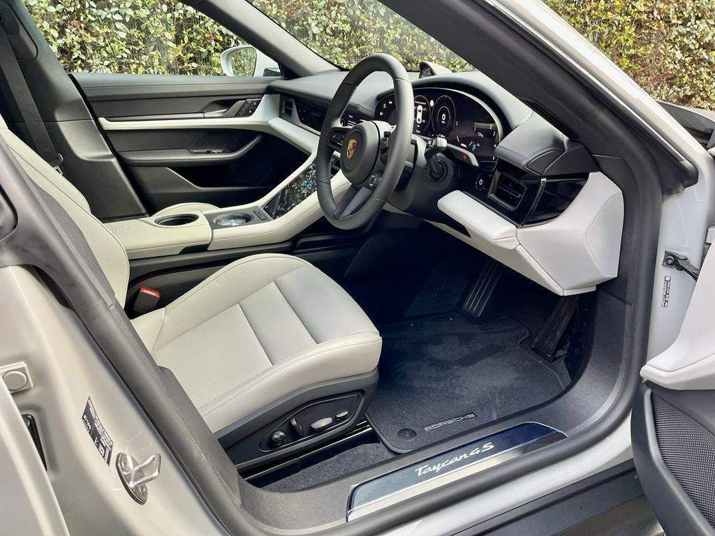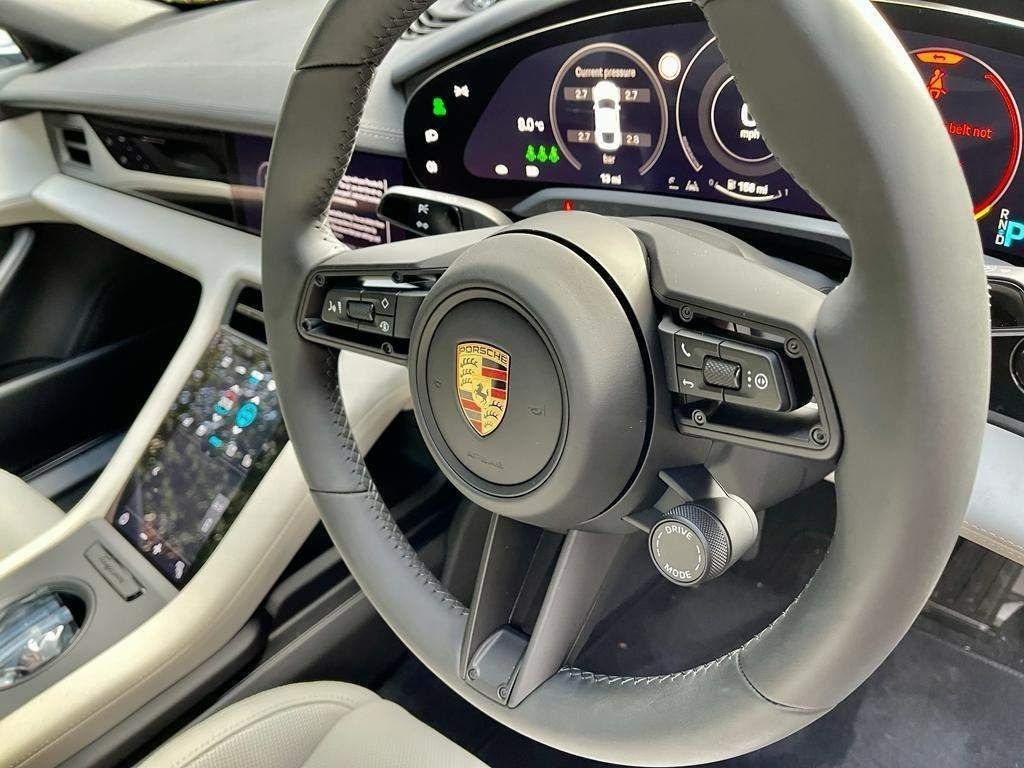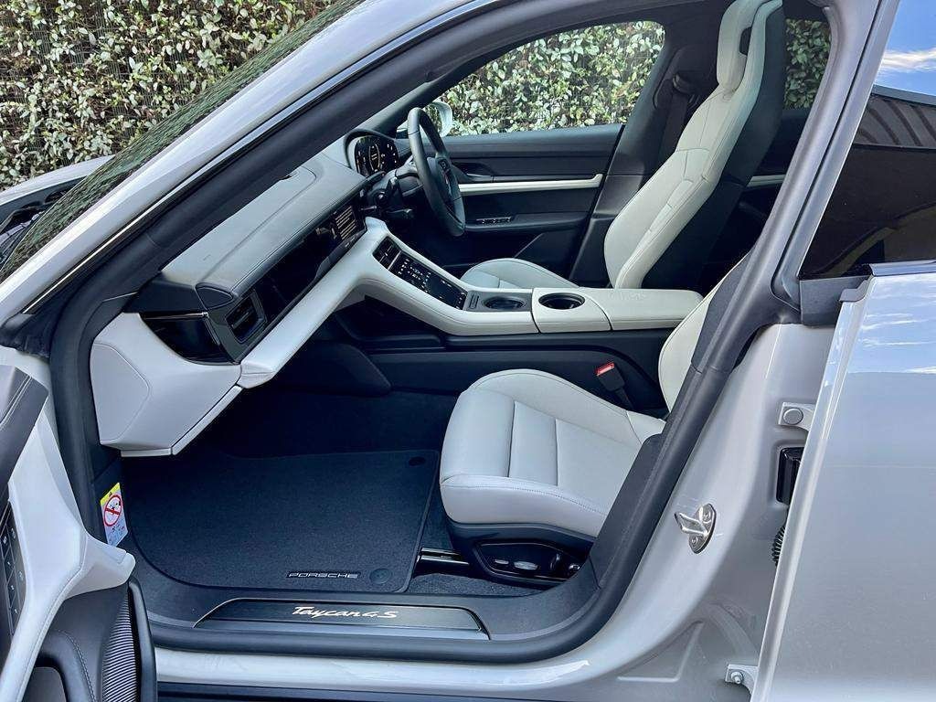 Porsche Taycan 4S Performance Plus 93.4kWh Panoramic Sunroof on 21-inch alloy wheels — exclusive Taycan design, heated front seats. Heated steering wheel, leather interior.