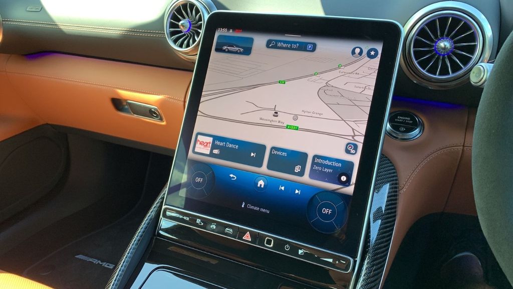 Mercedes-Benz SL Class SL63 Premium Plus 4.0. 21" AMG 10-twin-spoke forged wheels. MBUX Navigation. Burmester surround sound system. Blind Spot Assist. Cruise Control. AMG Night package. Steering Wheel Heating. Front seats - multi-contour with massage function. Automatic Climate Control.