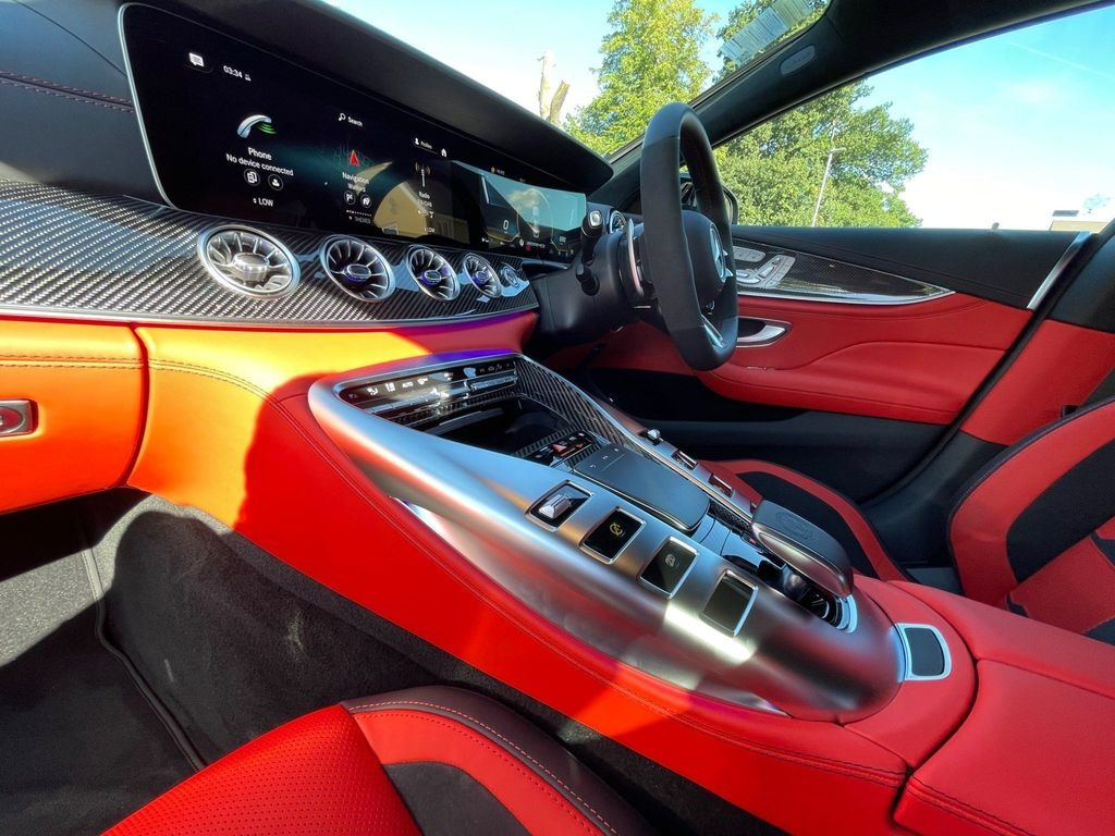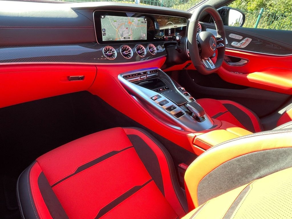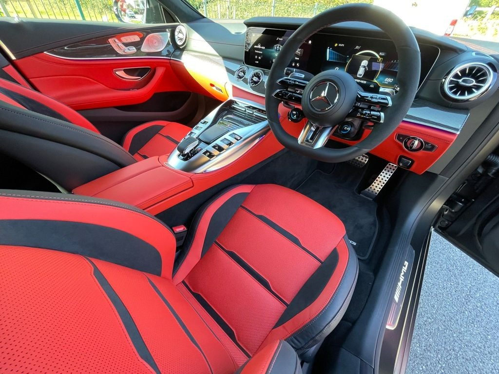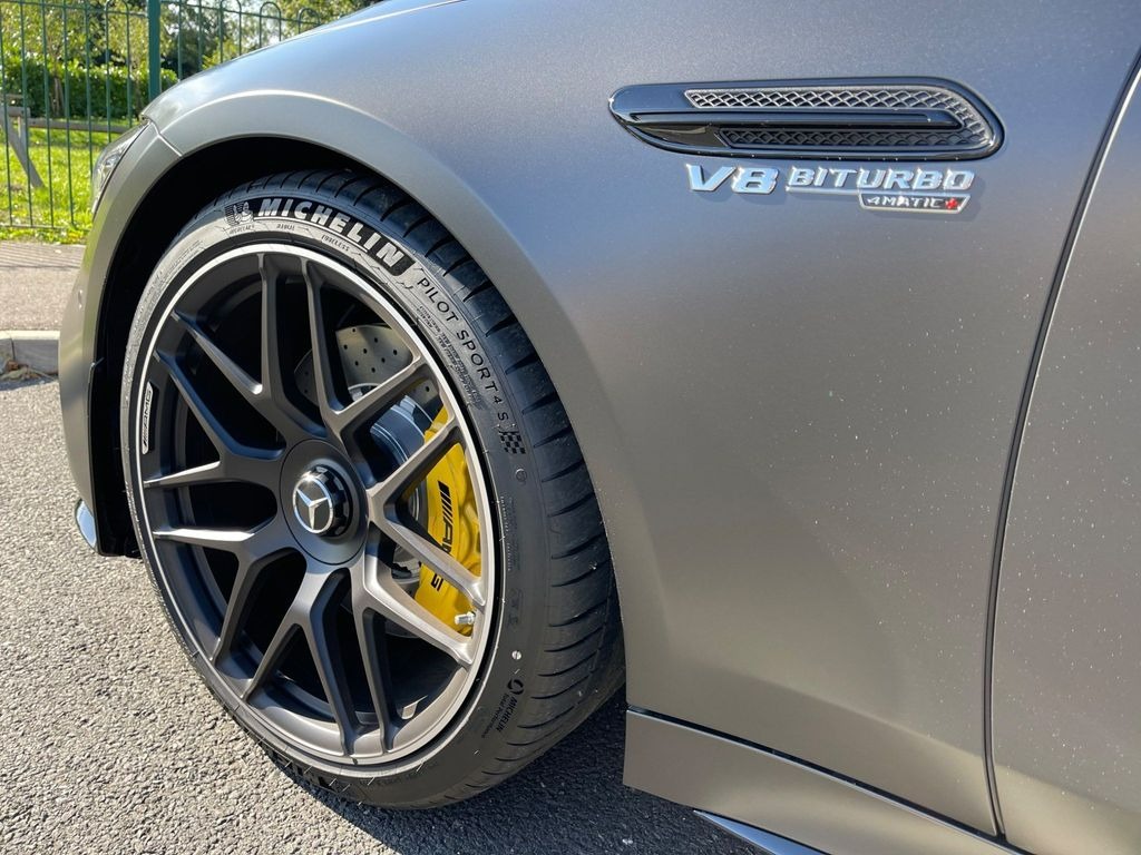 Mercedes-Benz AMG GT 63 V8 BiTurbo S Premium Plus 4.0 Panoramic Sunroof 21in Alloy Wheels - AMG Cross-Spoke Design - Forged - Painted Matt Black with a High-Sheen Rim Flange. KEYLESS-GO Starting Function. Seat Heating Plus for Driver and Front Passenger Seats. Seats - Heated Rear. AMG Sports Seats with Embossed AMG Emblem in the Head Restraints and Bezel in Silver Chrome with "AMG" Lettering.