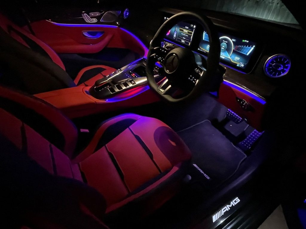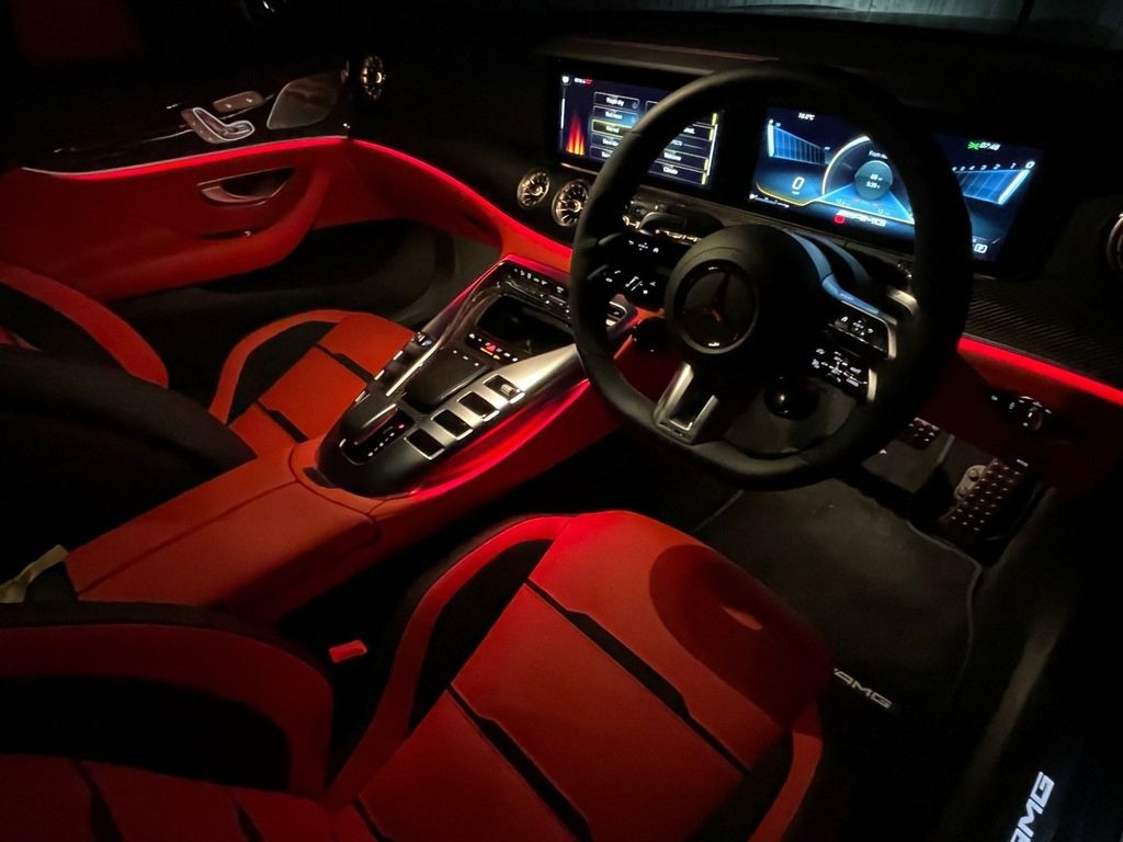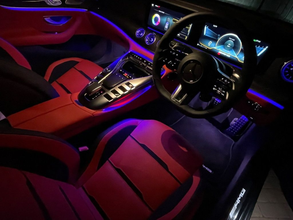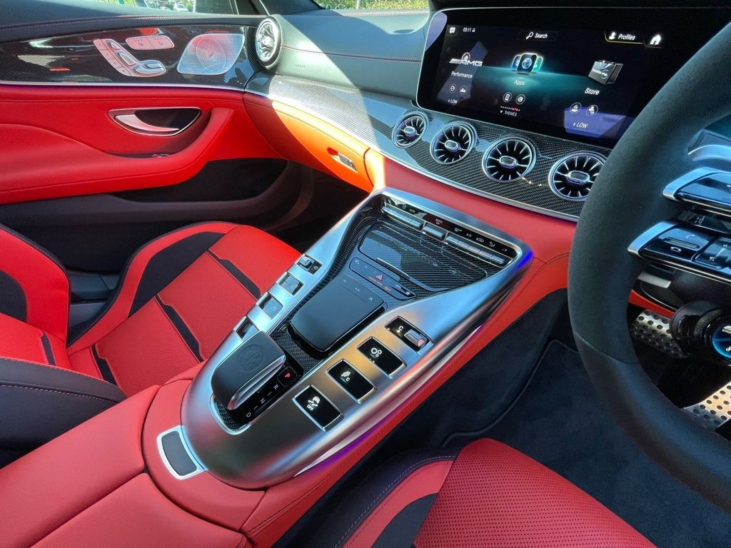 Mercedes-Benz AMG GT 63 V8 BiTurbo S Premium Plus 4.0 Panoramic Sunroof 21in Alloy Wheels - AMG Cross-Spoke Design - Forged - Painted Matt Black with a High-Sheen Rim Flange. KEYLESS-GO Starting Function. Seat Heating Plus for Driver and Front Passenger Seats. Seats - Heated Rear. AMG Sports Seats with Embossed AMG Emblem in the Head Restraints and Bezel in Silver Chrome with "AMG" Lettering.