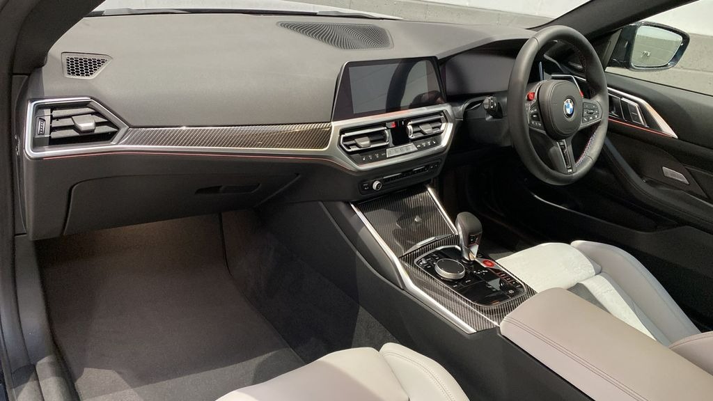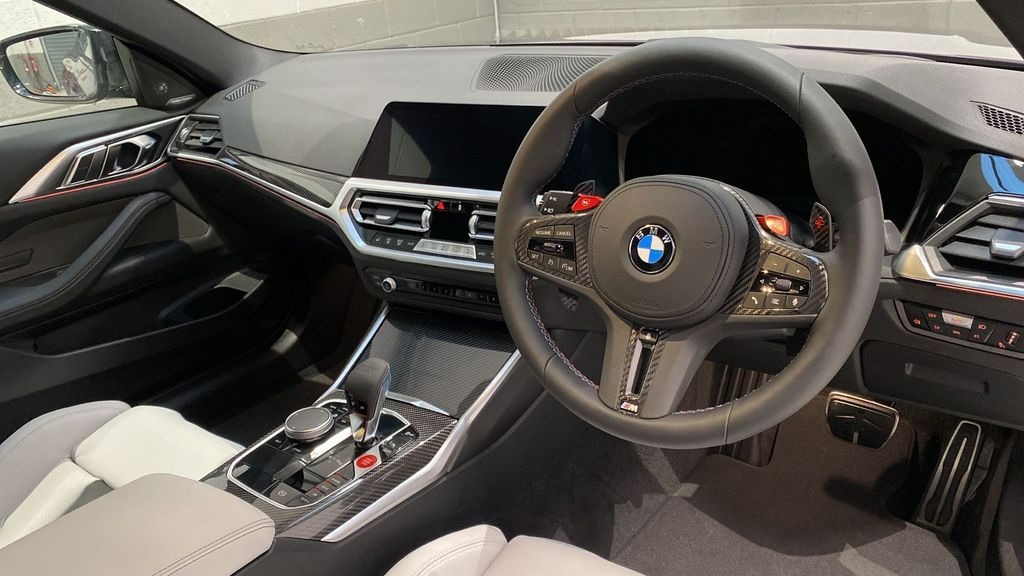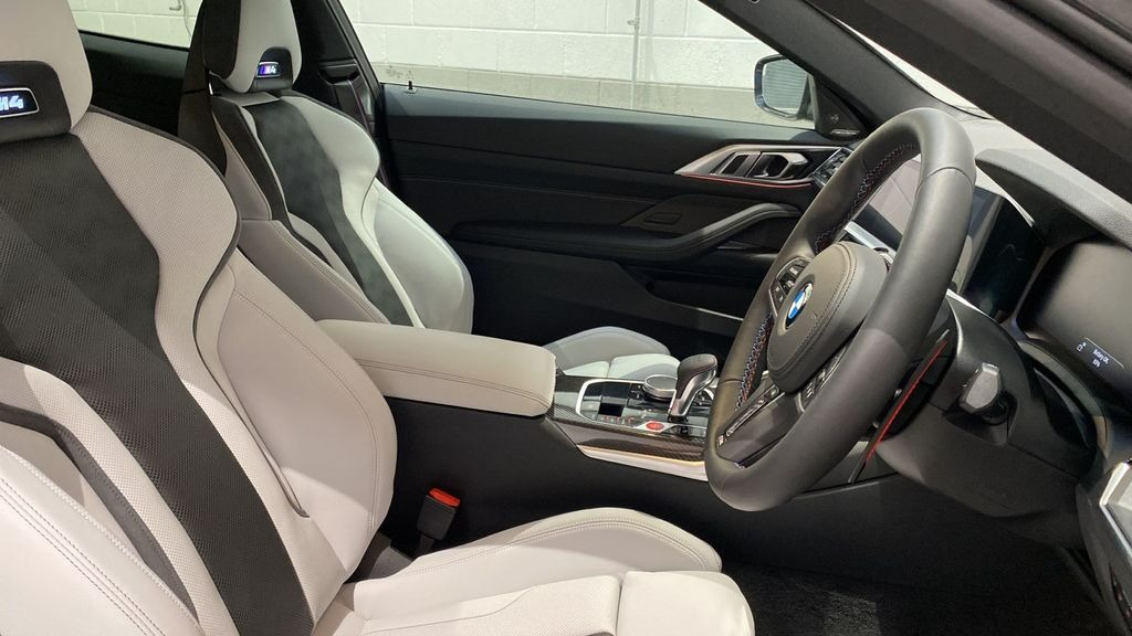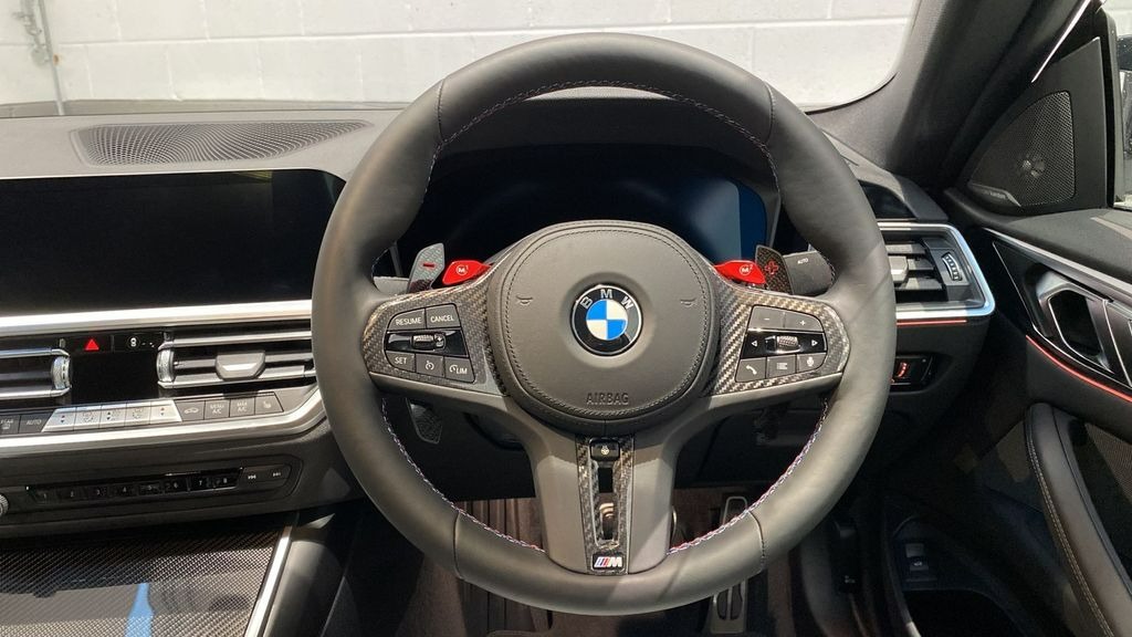 BMW M4 Competition with M xDrive 3.0 Panoramic Sunroof 19in Front - 20in Rear Alloy Wheels - M Double Spoke - 826 - Forged - Jet Black with Mixed Tyres. M Sport Seats. Electric Memory Seats. Front Heated Seats.