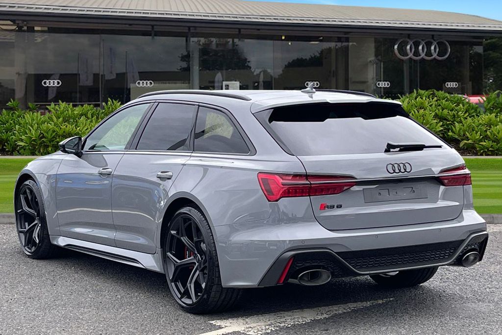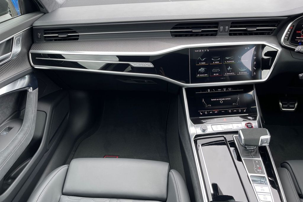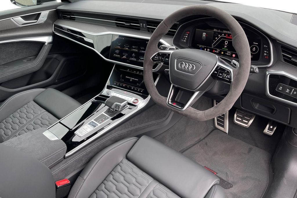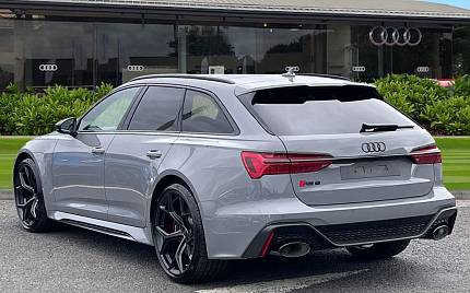 Audi RS6 Avant TFSI V8 Performance Carbon Vorsprung Tiptronic quattro 4.0. Panoramic Sunroof. 22in Alloy Wheels - 5 Y-Spoke - Matt Black. Bang and Olufsen Premium Sound System with 3D Sound. Park Assist Plus. Surround View Cameras. RS Flat Bottomed Alcantara Multifunction Steering Wheel with Aluminium Shift Paddles. Heated Front and Rear Seats. Seat Ventilation for Front Seats. Deluxe 4-Zone Automatic Climate Control.