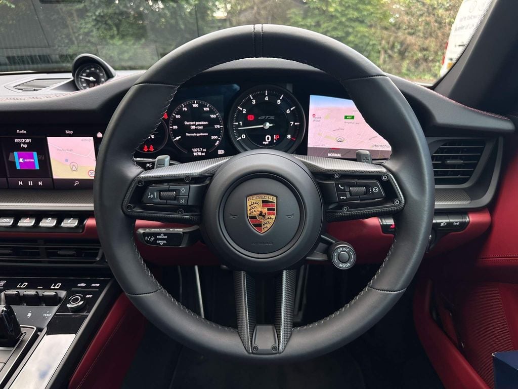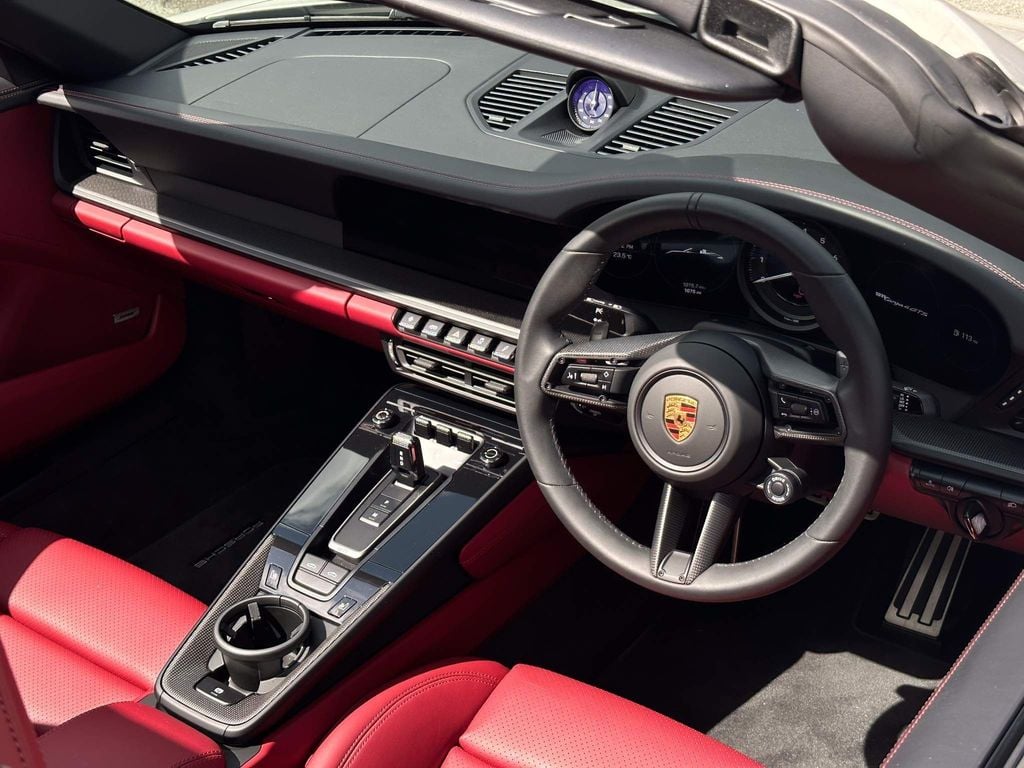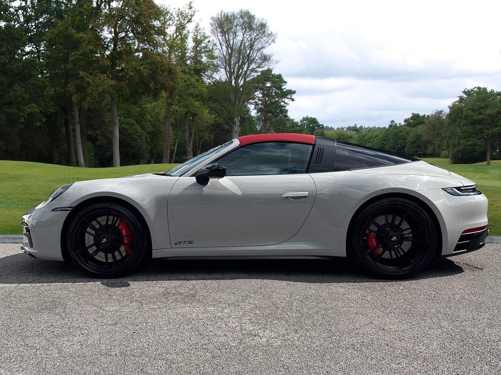 Porsche 911 T 992 4 GTS Targa PDK 3.0. 20" / 21" Turbo S Satin Black Alloys. Bose Surround Sound. 360 Camera. Cruise Control. Keyless Drive. Multifunction GT Sports Steering Wheel in Race-Tex. 18 Way Electric Memory Adaptive Sports Seats with Crested Headrests. Two-Zone Automatic Climate Control.