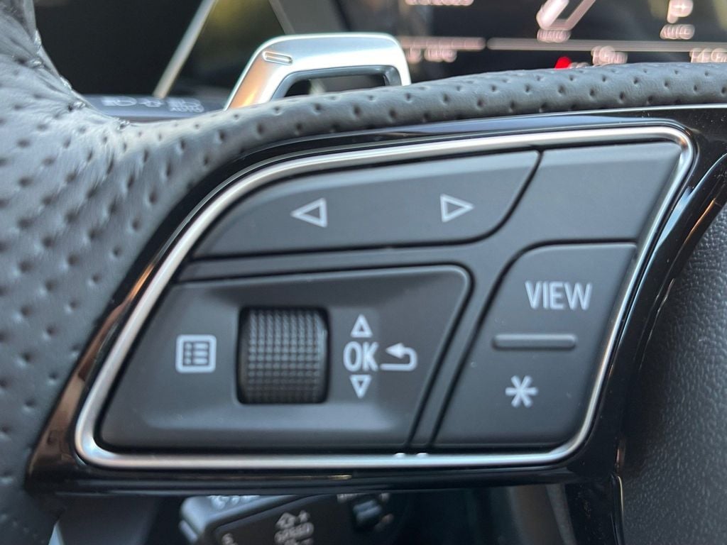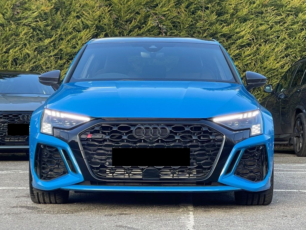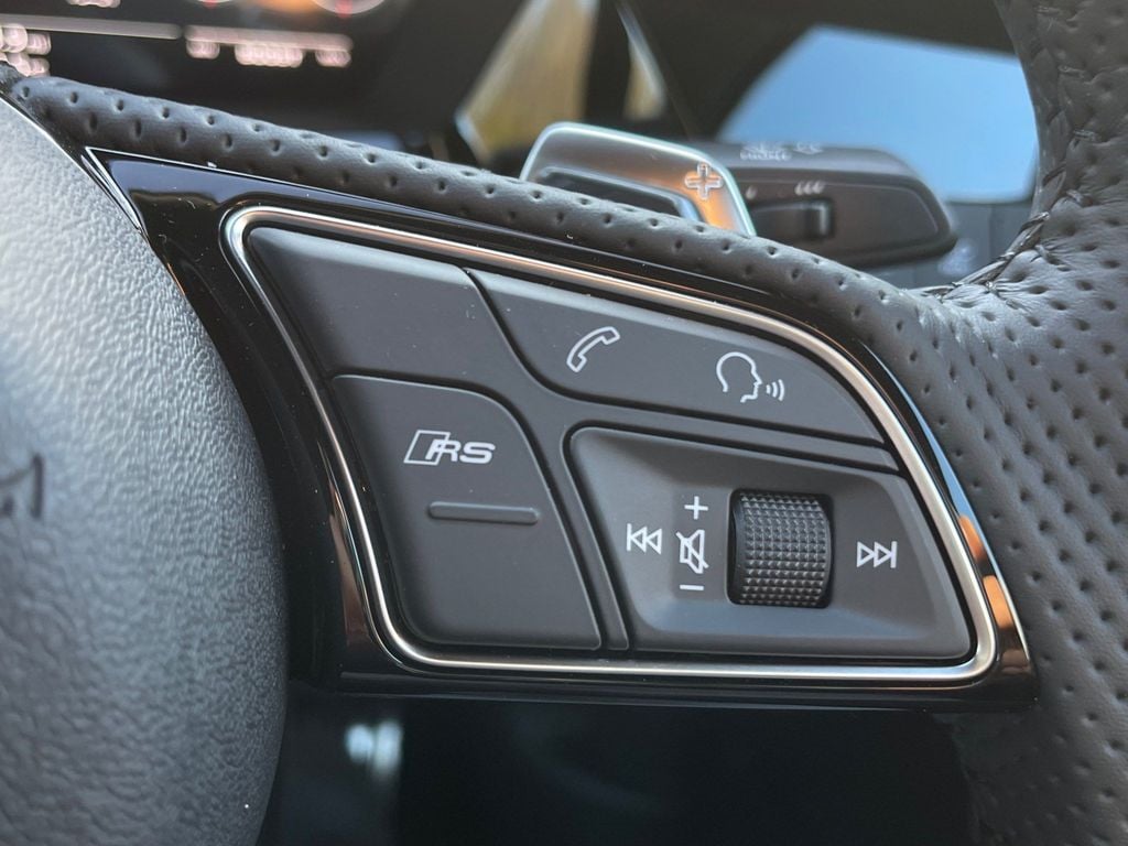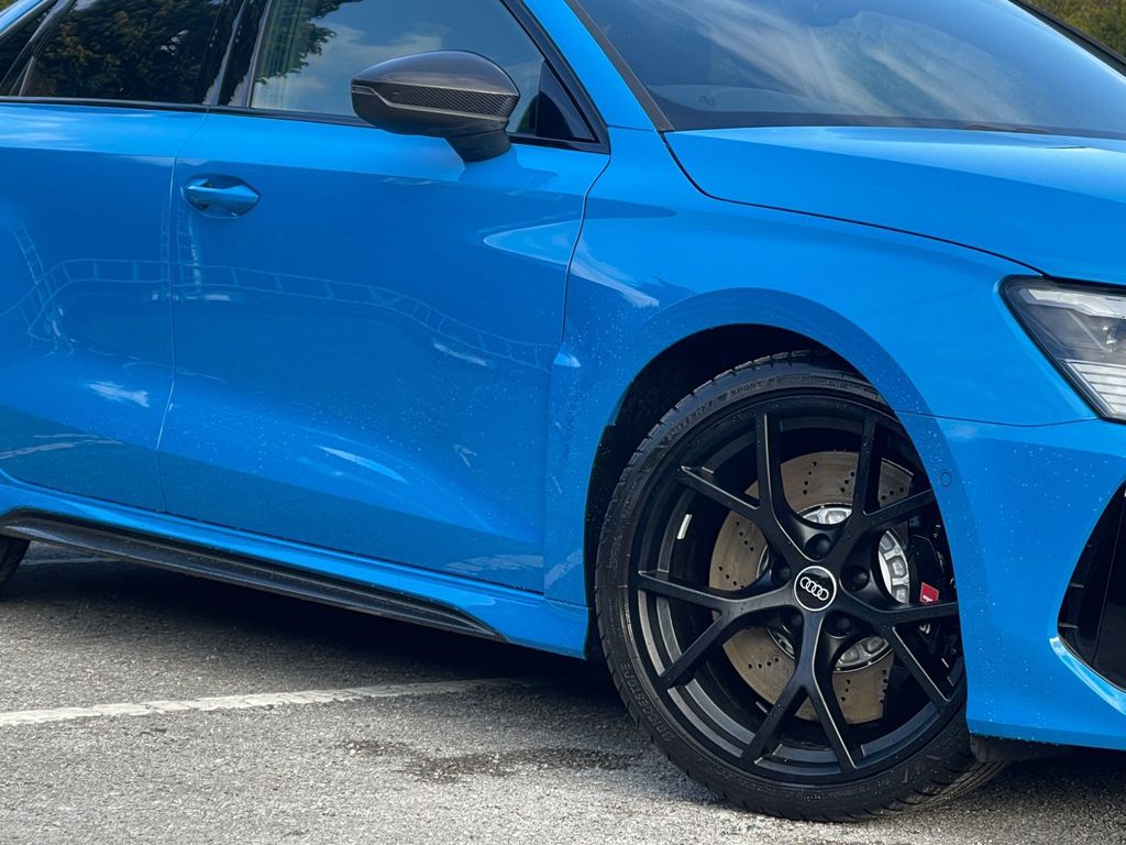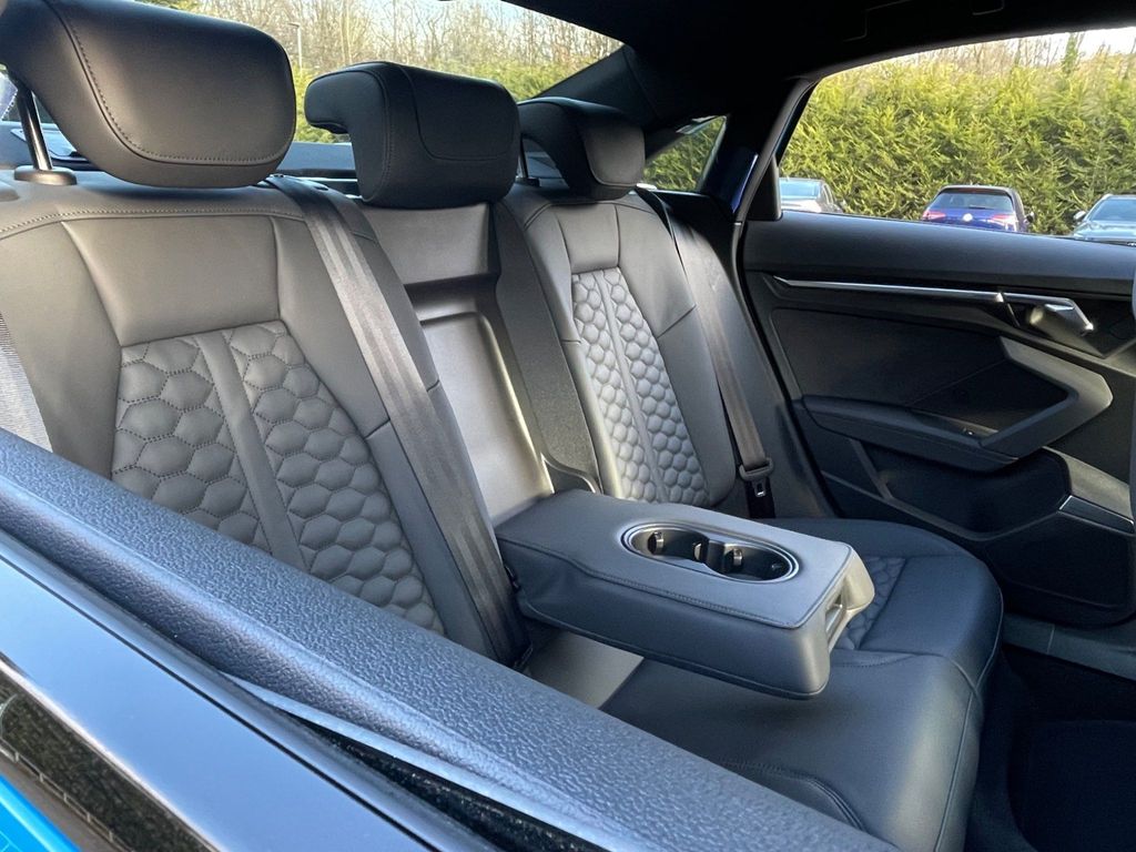 Audi RS3 TFSI Carbon Black S Tronic quattro 2.5. 19in Alloy Wheels - 5-Y-Spoke-Matt Black. Bang and Olufsen Sound System. Apple Car Play. Cruise Control. Flat Bottomed 3 Spoke Leather Multi-function Sport Steering Wheel with Gear Shift Paddles in Aluminium Look - Contrast Stitching and RS Badging. Heated Front Seats. Dual-Zone Electronic Climate Control.