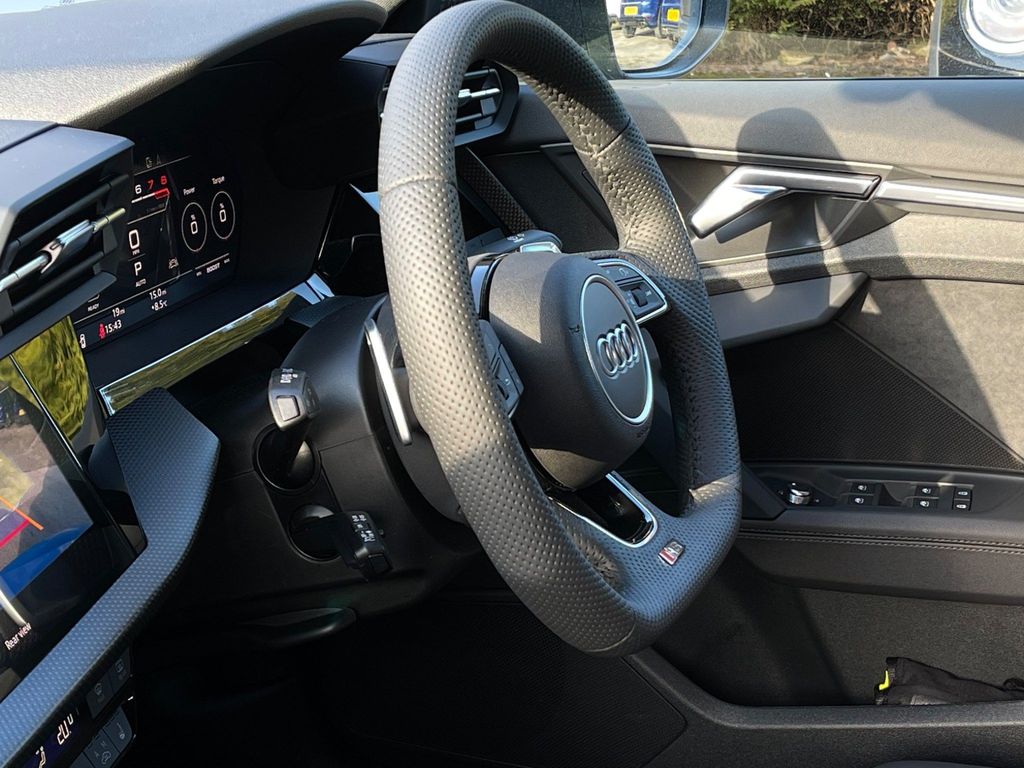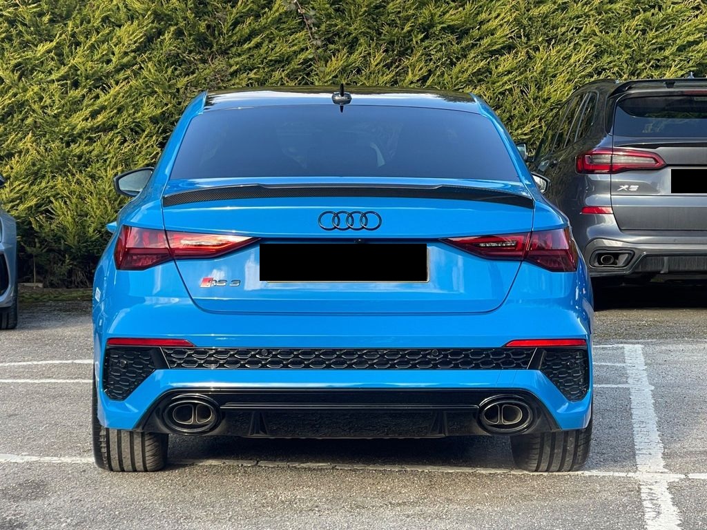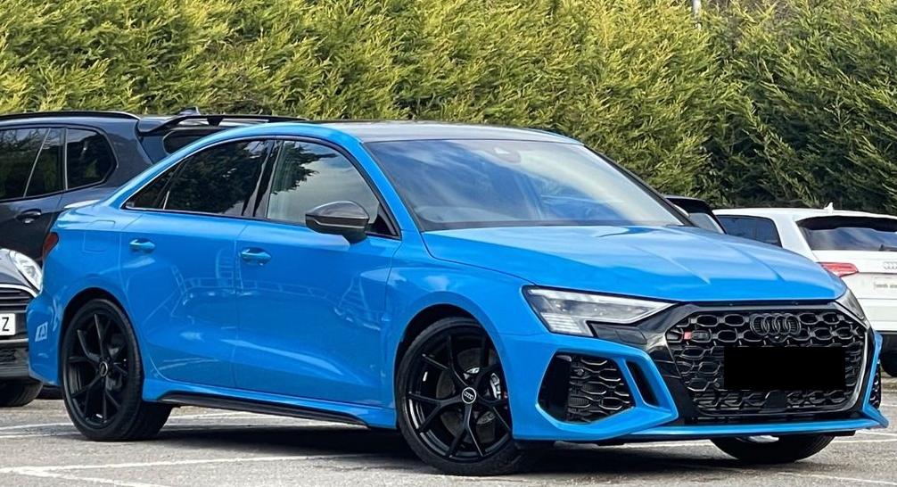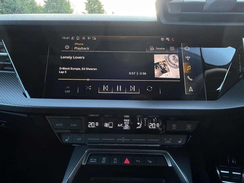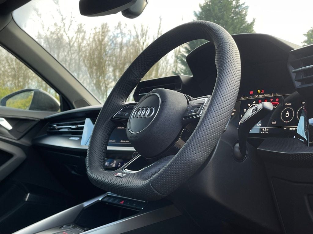 Audi RS3 TFSI Carbon Black S Tronic quattro 2.5. 19in Alloy Wheels - 5-Y-Spoke-Matt Black. Bang and Olufsen Sound System. Apple Car Play. Cruise Control. Flat Bottomed 3 Spoke Leather Multi-function Sport Steering Wheel with Gear Shift Paddles in Aluminium Look - Contrast Stitching and RS Badging. Heated Front Seats. Dual-Zone Electronic Climate Control.