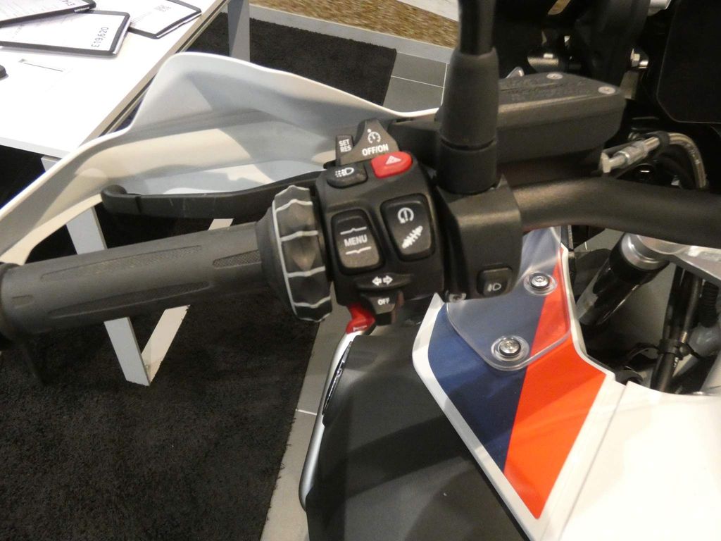 BMW R 1250 GS Adventure TE. Gearshift Assist Pro. Riding Mode Pro: Dynamic, Dynamic Pro, Enduro, Enduro Pro, HSC Pro, DBC. Cruising Lights and Multifunction Indicators. Cruise Control. Heated Grips. Tyre Pressure Control. Chrome Header Pipe / Chrome Exhaust (NW HP Sports Exhaust). Dynamic Traction Control (DTC). Dynamic Electronic Suspension Adjustment (D-ESA). Pannier Fastenings L&R for Aluminium Panniers. Keyless Ride. Preparation for GPS