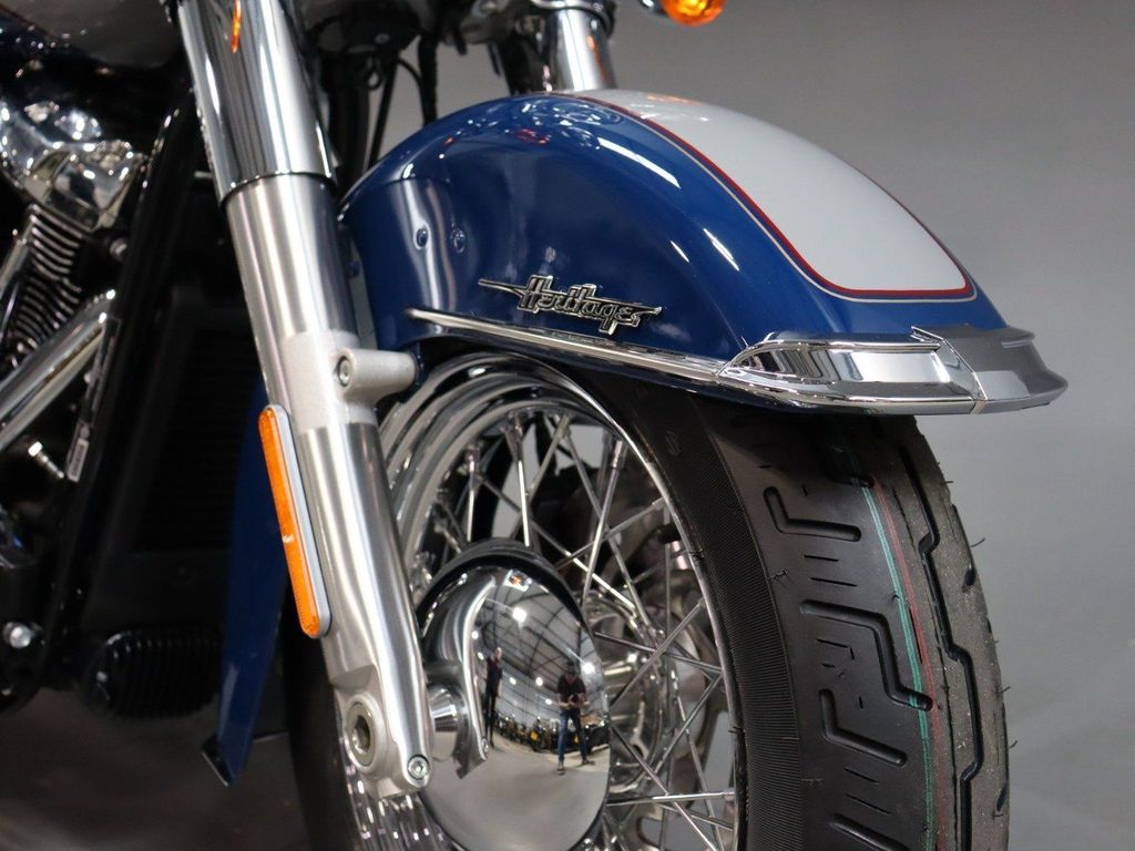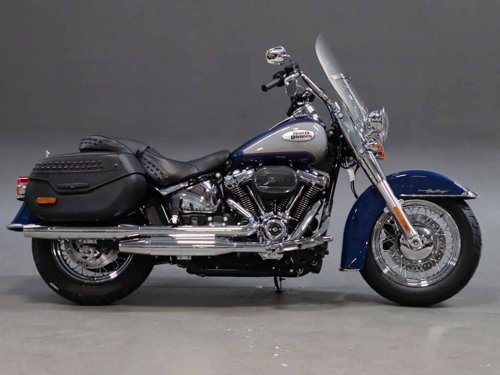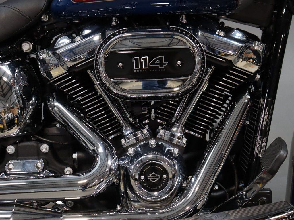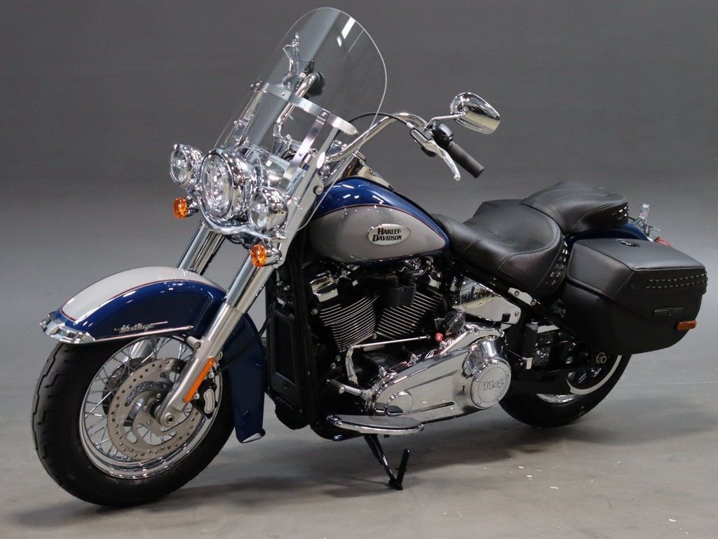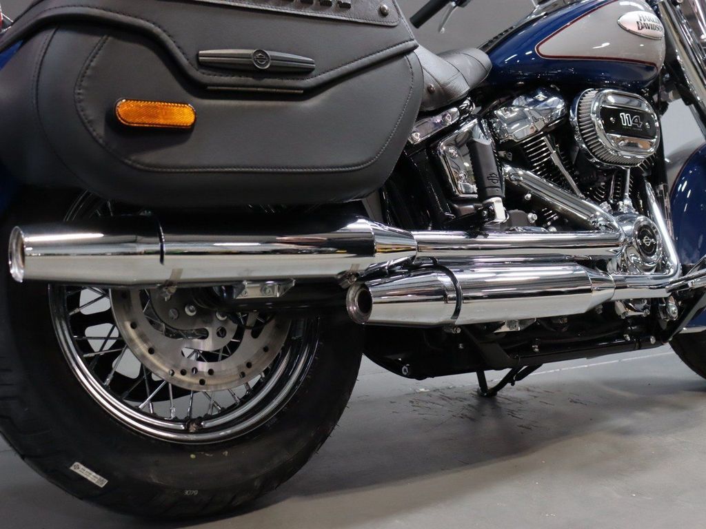 Harley Davidson Softail Heritage Classic 114. Milwaukee-Eight™ 114 engine. Front and rear silver, Split 7-spoke floating rotors. Sophisticated suspension technology provides the performance of a racing-style cartridge fork for reduced weight with linear damping characteristics. Relaxed riding position. Floorboards. Passenger seat. Low .