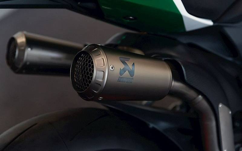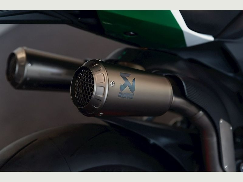Exhaust 2-1-2 system, primary tubes in titanium. Twin titanium mufflers. 2 lambda probes and 2 catalytic converters