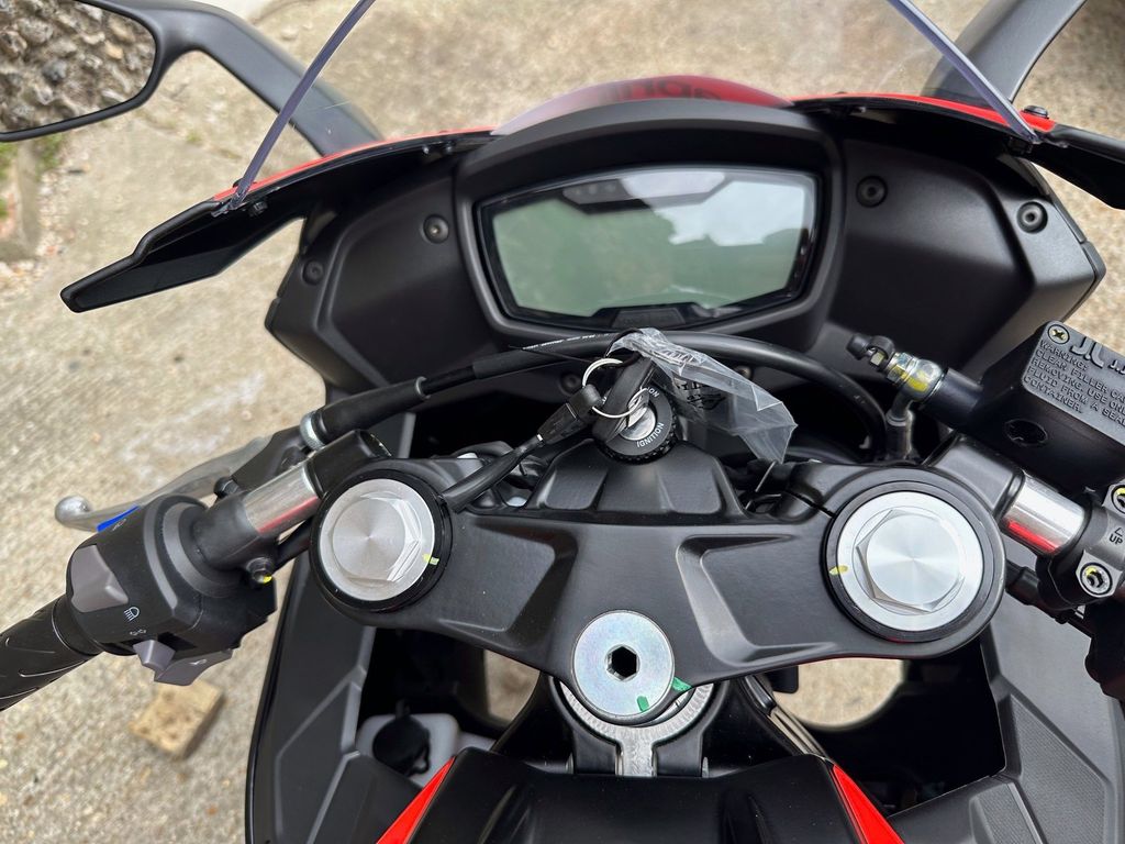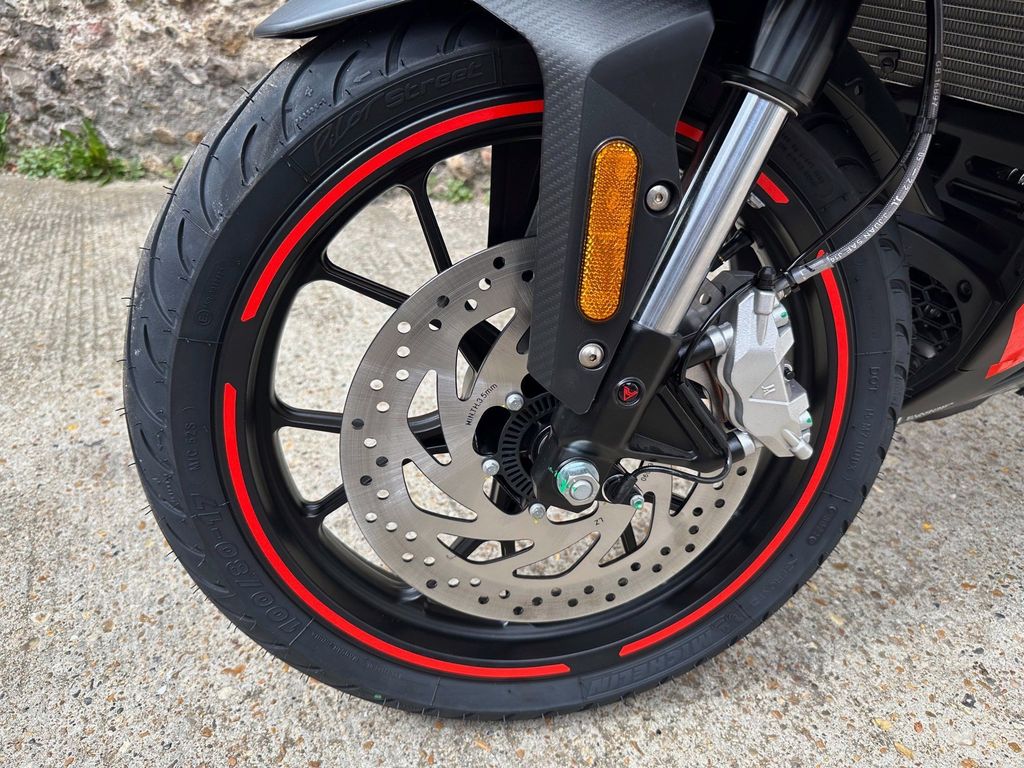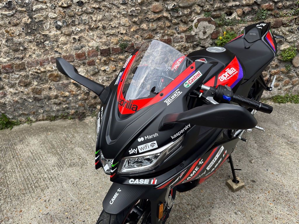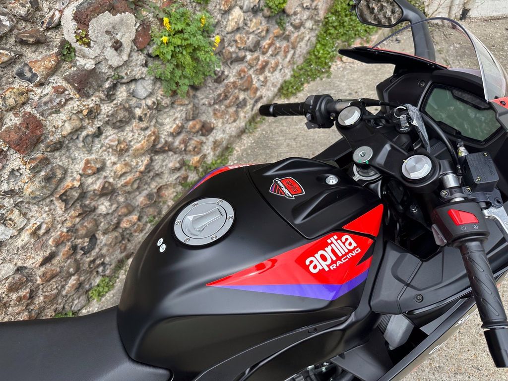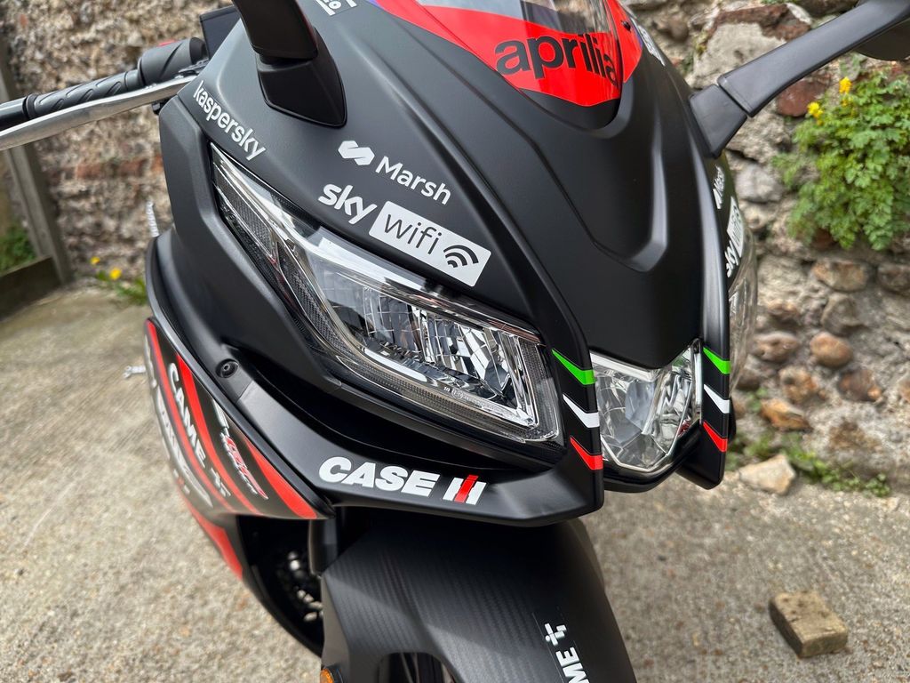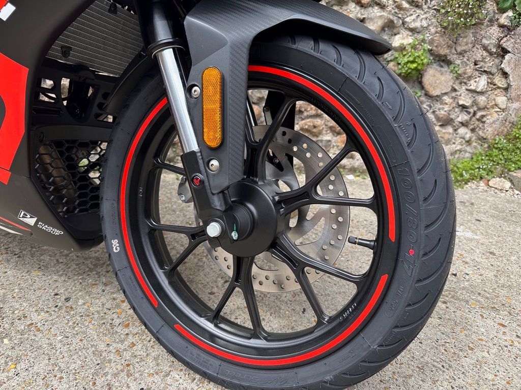 Aprilia RS 125 Replica GP. The technological heart of the Aprilia RS 125 is a 4-valve distribution, liquid-cooled single cylinder with completely revamped thermodynamics. It delivers a more robust torque curve, with maximum power reached at lower revs, meaning reduced fuel consumption. The new engine is Euro 5-compliant, for outstanding performance that doesn’t come at the cost of the environment. The Aprilia RS 125 promises a riding position that is truly sporty, with no compromises, no shortcuts taken. The foot pegs are designed to avoid fatigue, the handlebar is placed so that the rider has total control of the bike, with the clip-ons raised by 18 mm for greater comfort. The Aprilia RS 125 also sports a new digital instrument display, packed with data such as fuel level indicator, instantaneous and average fuel consumption, remaining mileage and much more.