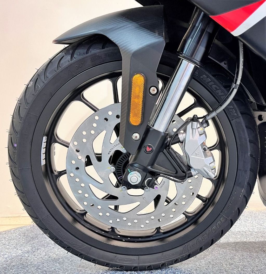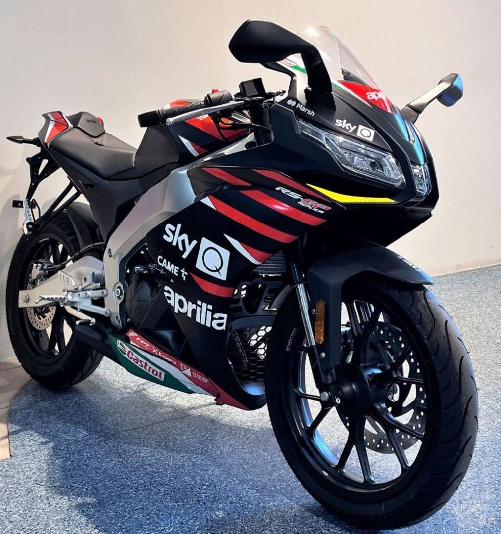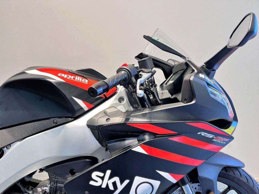 Aprilia RS 125 Replica GP. The technological heart of the Aprilia RS 125 is a 4-valve distribution, liquid-cooled single cylinder with completely revamped thermodynamics. It delivers a more robust torque curve, with maximum power reached at lower revs, meaning reduced fuel consumption. The new engine is Euro 5-compliant, for outstanding performance that doesn’t come at the cost of the environment. The Aprilia RS 125 promises a riding position that is truly sporty, with no compromises, no shortcuts taken. The foot pegs are designed to avoid fatigue, the handlebar is placed so that the rider has total control of the bike, with the clip-ons raised by 18 mm for greater comfort. The Aprilia RS 125 also sports a new digital instrument display, packed with data such as fuel level indicator, instantaneous and average fuel consumption, remaining mileage and much more.